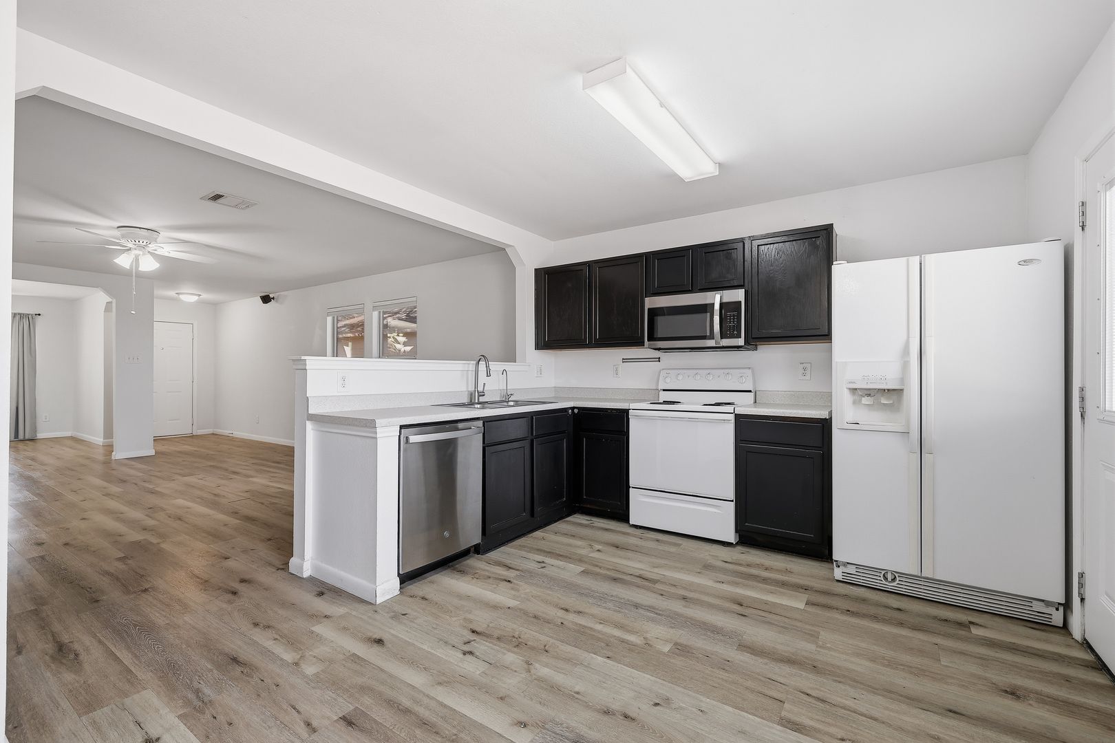 ***APPLICATION CURRENTLY UNDER REVIEW*** MOVE IN SPECIAL ONE WEEK FREE***Discover the charm of this single-story treasure in the highly sought-after Carriage Hills subdivision. Featuring stunning imitation wood tile flooring throughout—no carpet in sight—this home offers a seamless blend of style and practicality. The open-concept design creates an effortless flow between the living room, dining area, and kitchen. For added versatility, the dining space can easily transform into an additional living area or a home office, while the kitchen’s cozy breakfast nook is perfect for casual meals.