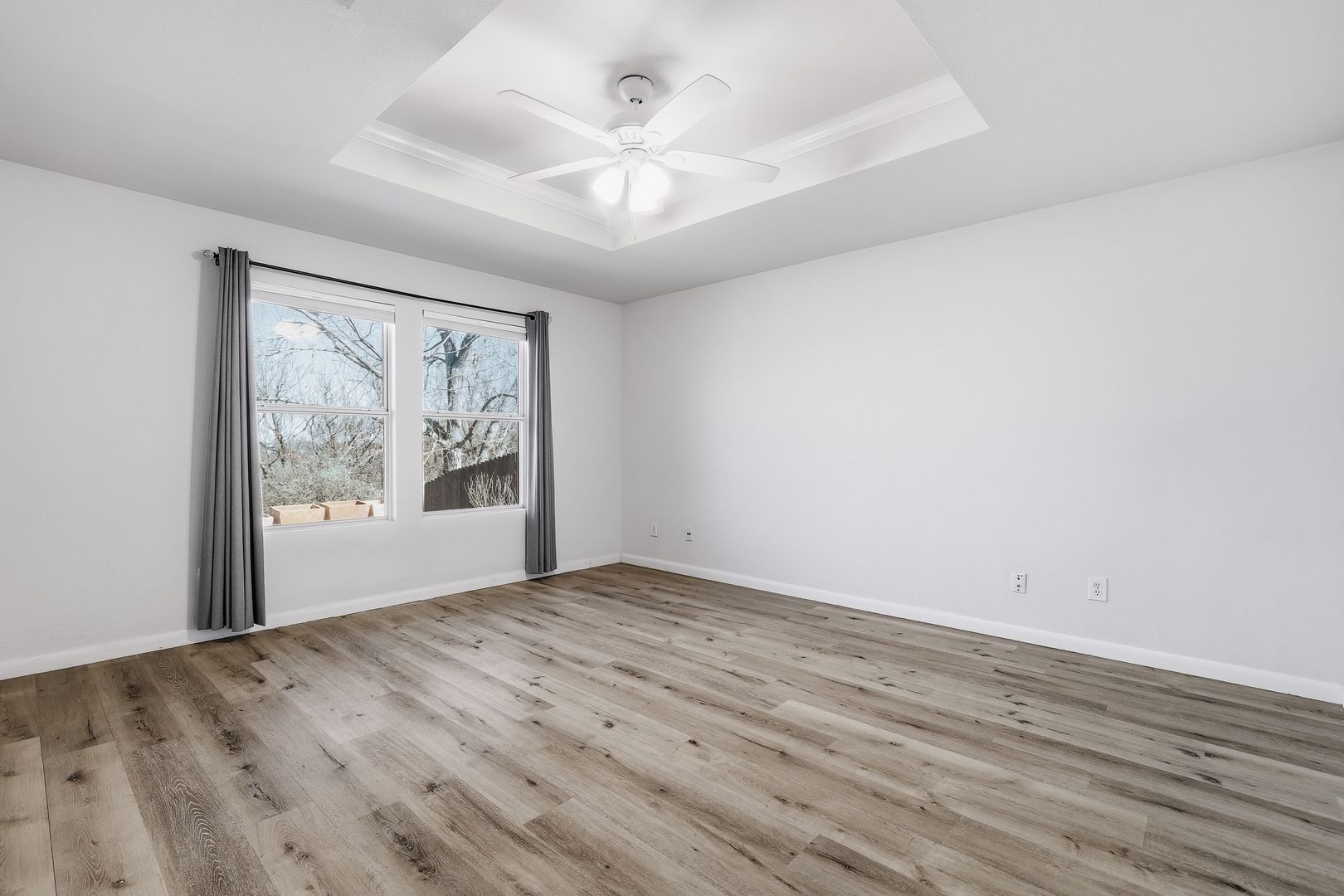The primary suite is a sanctuary of its own, boasting a coffered ceiling, a luxurious en suite with a double vanity, and a separate tub and shower. Outside, the real highlight awaits—a full-sized deck where you can take in breathtaking views and enjoy the tranquility of having no neighbors directly behind you. Just steps away from the serene trails of Bamberger Nature Park, this property is a rare find offering both comfort and a connection to nature.