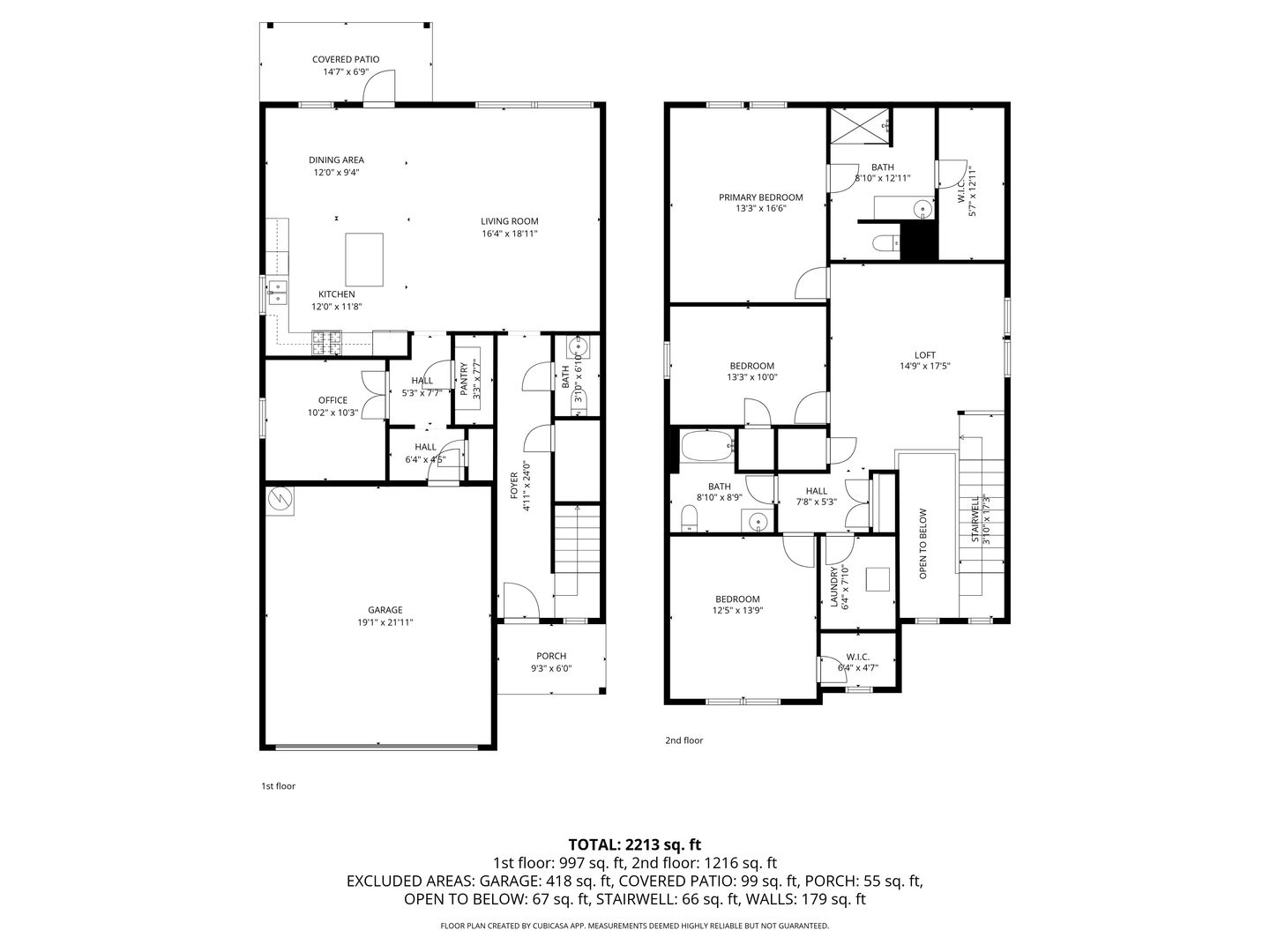 Upstairs, the primary suite impresses with a spacious en suite bath and walk-in closet. The second floor also offers a generous loft and the utility room. Additional features include an electric garage door opener—an upgrade not offered by the builder—and a covered patio overlooking a privately fenced backyard.