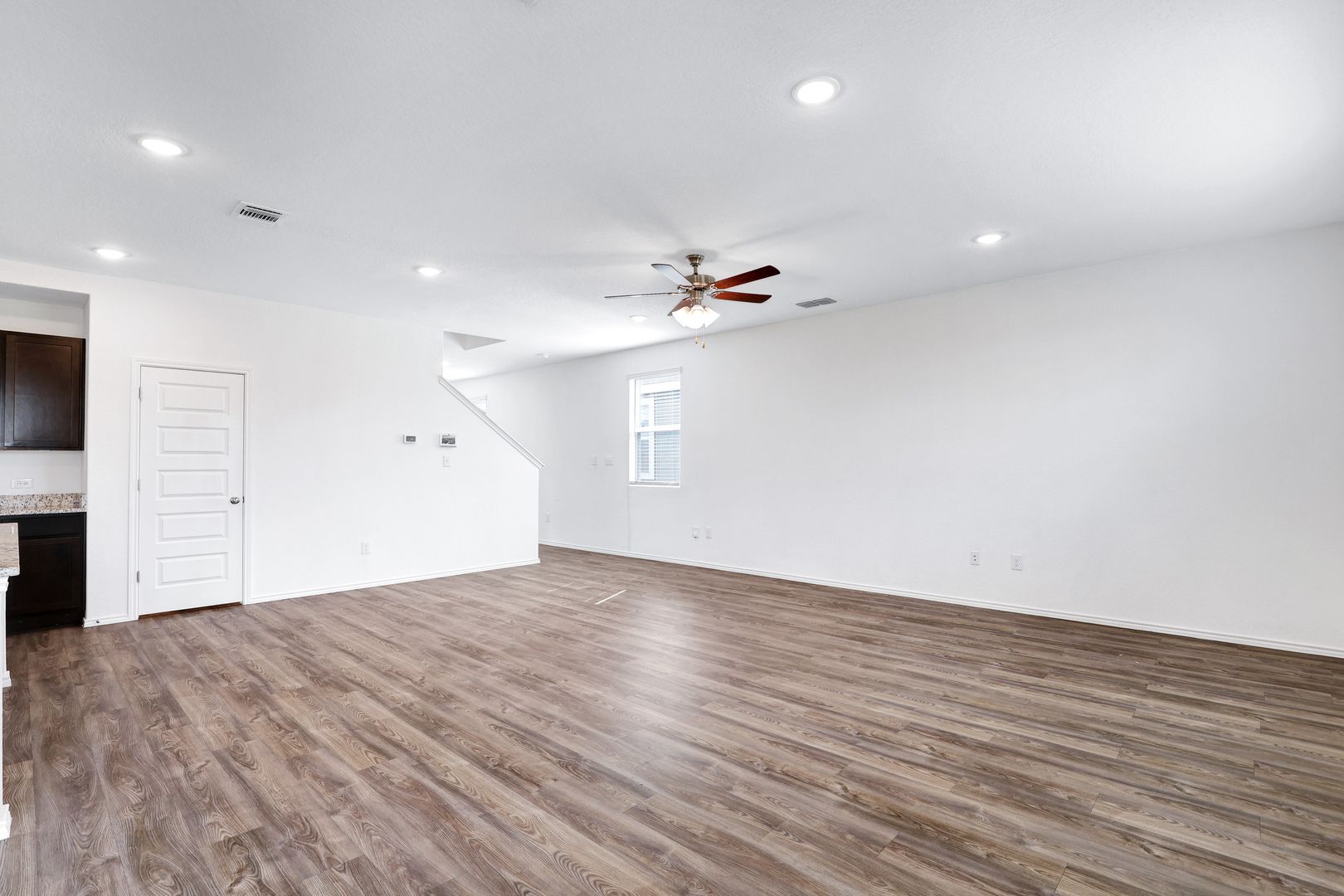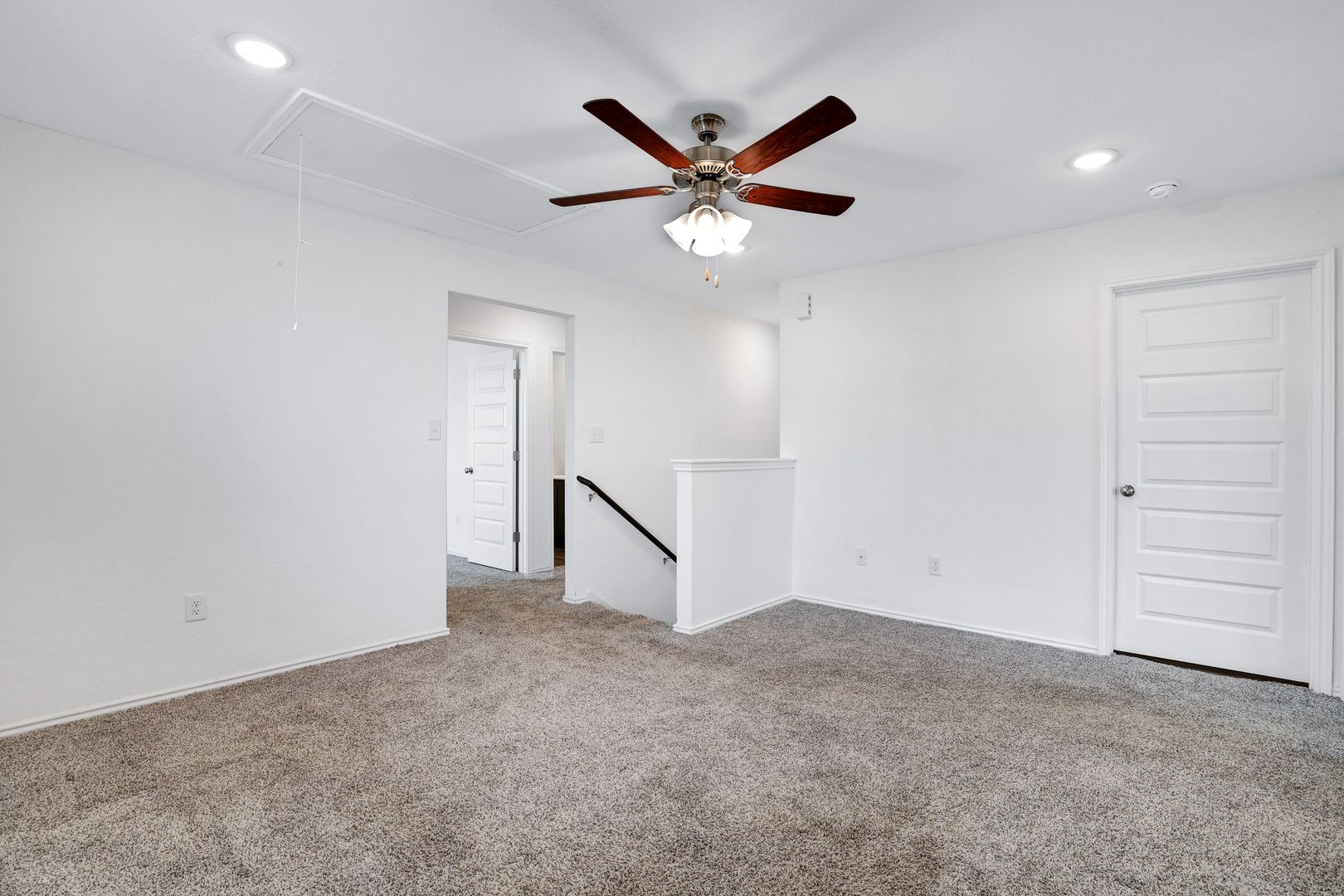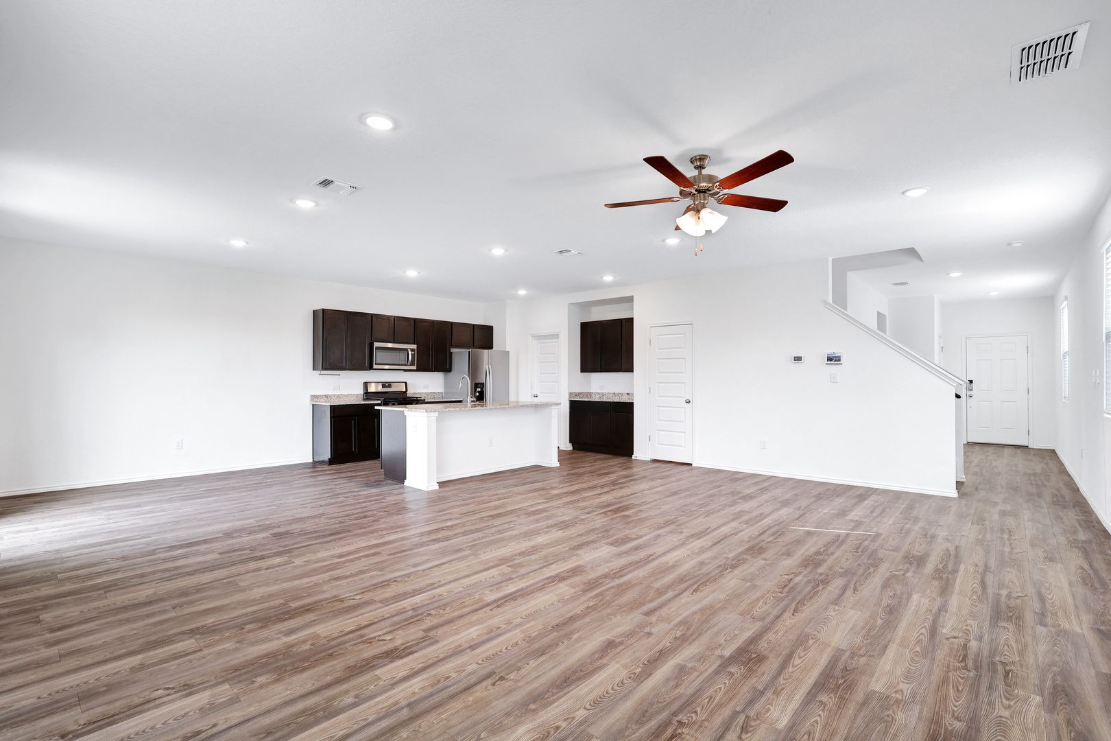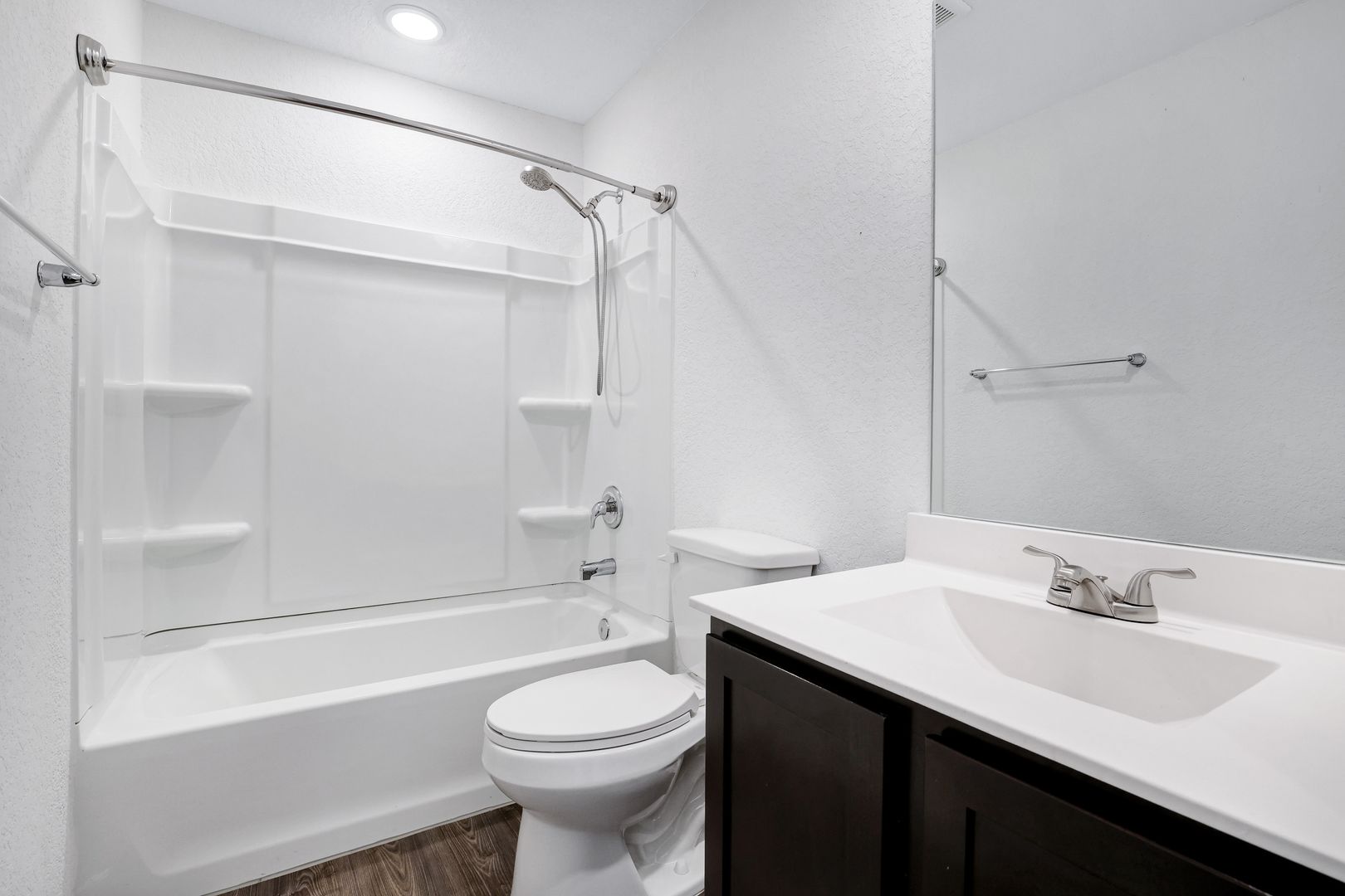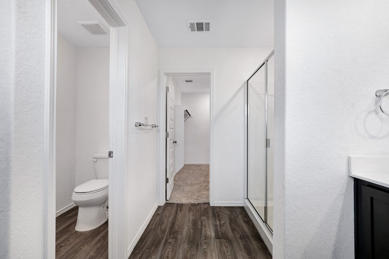 This contemporary 4-bedroom, 3-full bathroom residence offers the perfect blend of comfort and style. With a thoughtful layout, one bedroom and a full bathroom are conveniently located on the first floor, providing flexibility and accessibility. Upstairs, discover the remaining two secondary bedrooms and the luxurious primary suite. The primary bathroom boasts a spacious walk-in shower and dual vanities, creating a serene retreat for relaxation.