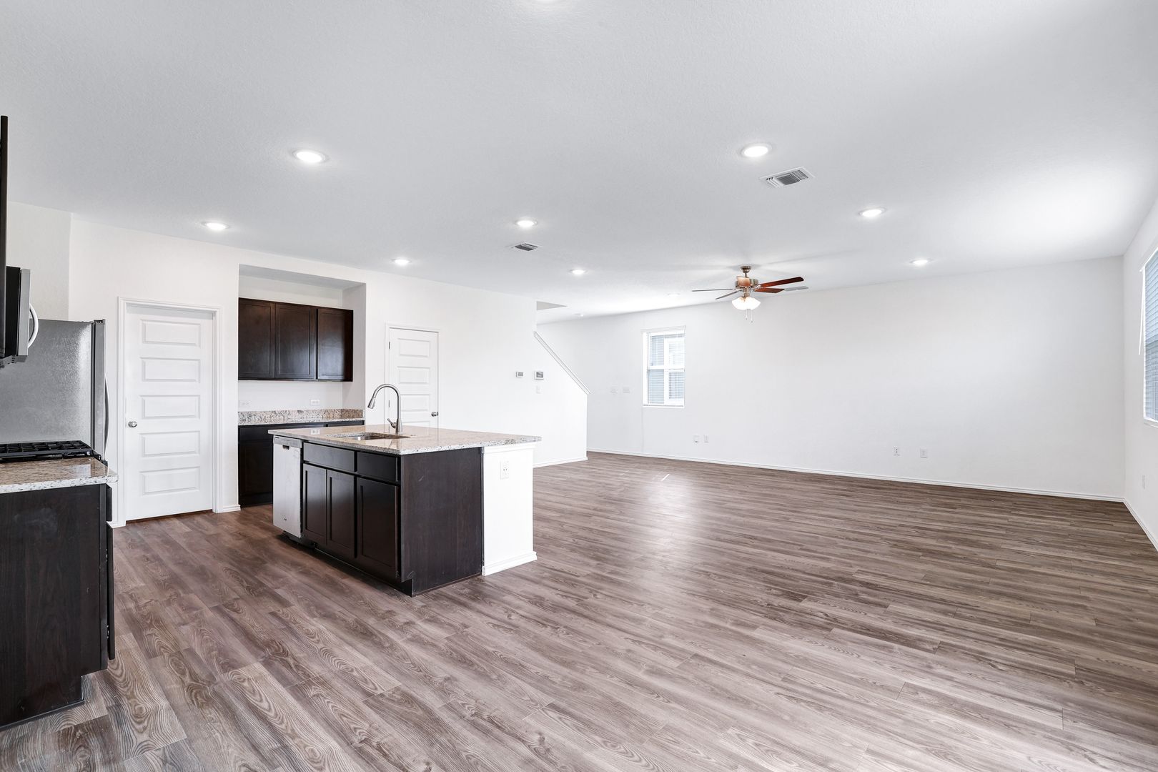 The heart of this home lies in the open-concept first-floor living area, seamlessly blending with the expansive island kitchen. Revel in the culinary experience with granite countertops, gas cooking, and stainless steel appliances, making this kitchen a haven for both aspiring and seasoned chefs.