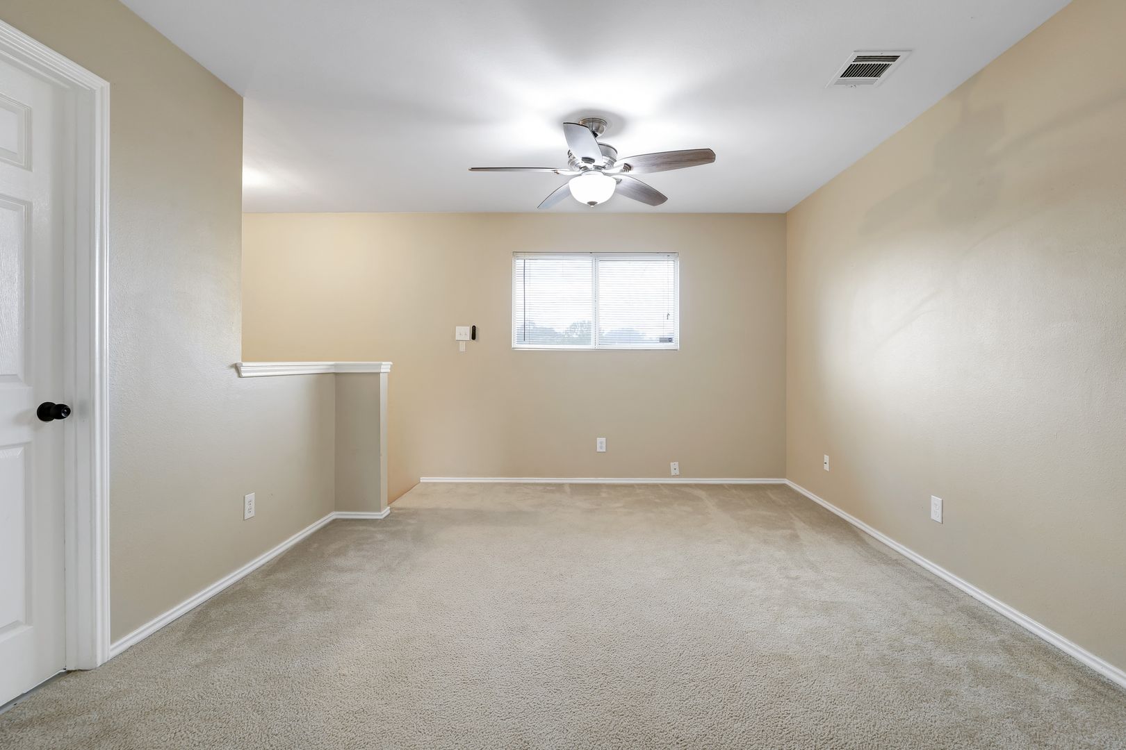 Upstairs, you'll find all the bedrooms, washer and dryer connections, and a spacious loft ideal for use as an office, playroom, or additional living area. The second level is adorned with plush carpeting, adding a touch of luxury. Ceiling fans in every room, including the garage, further enhance the home's energy efficiency.