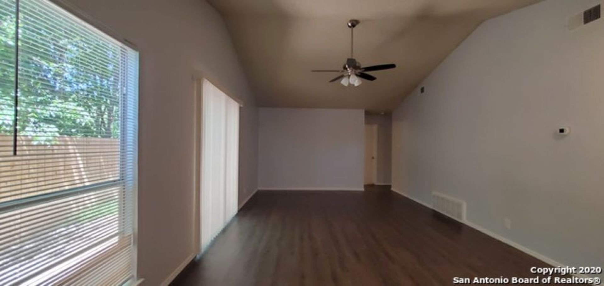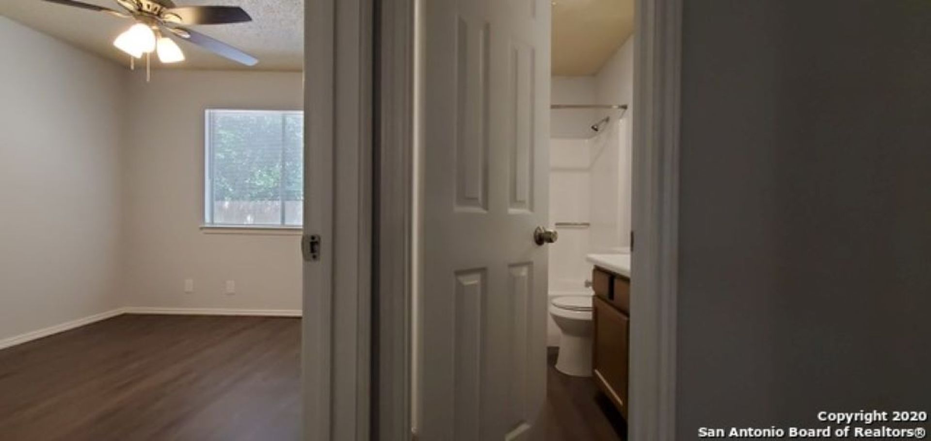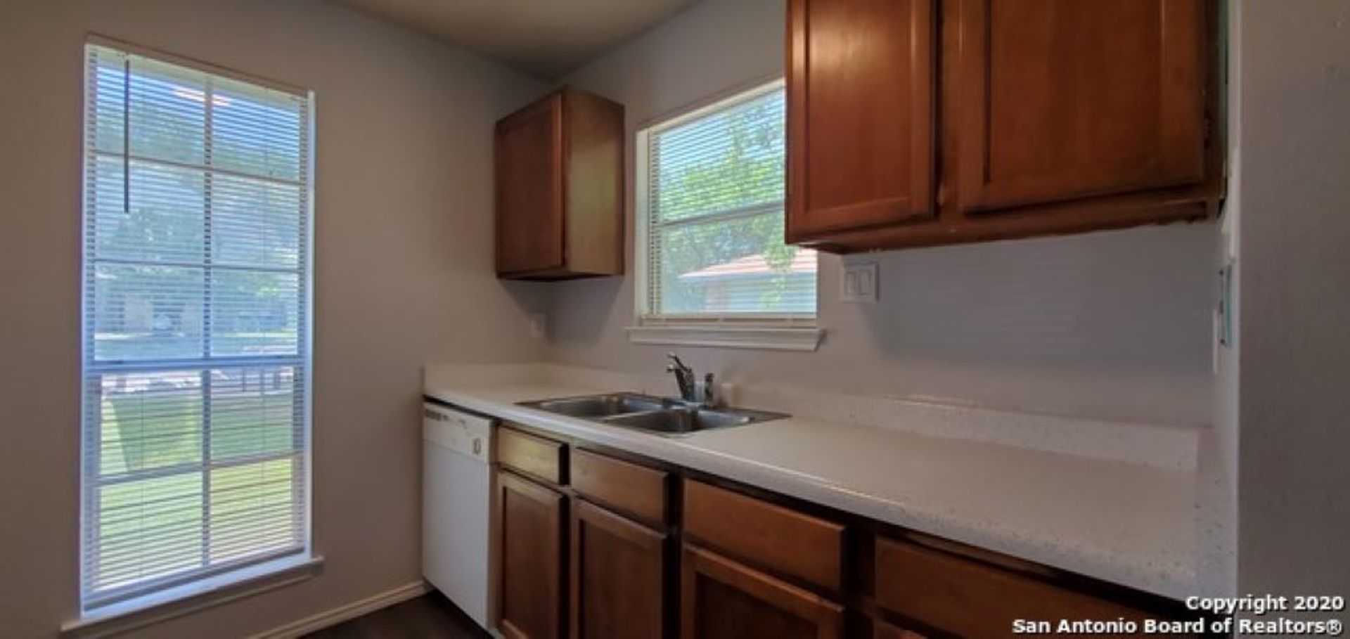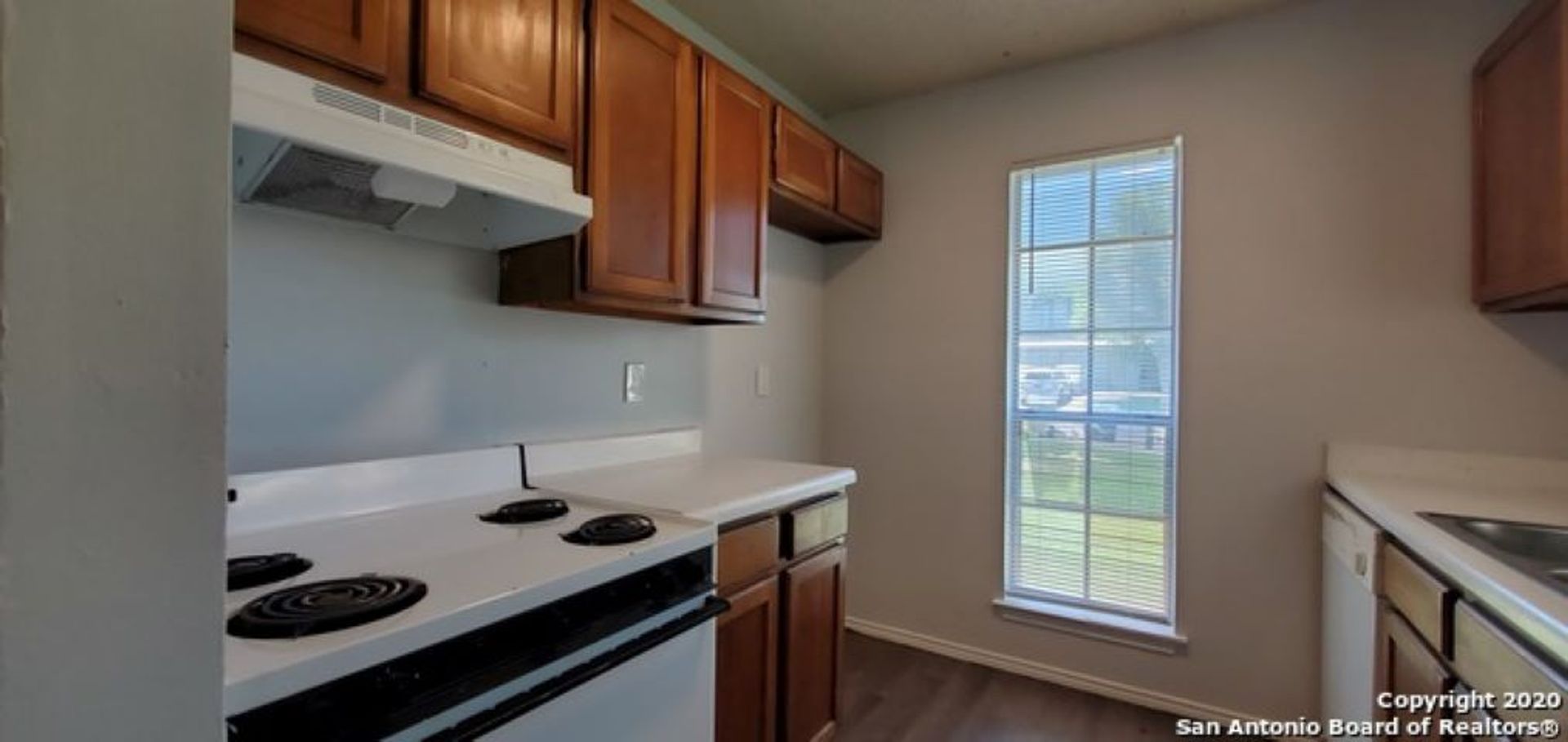 Welcome to this charming single-story duplex featuring 2 bedrooms and 2 full bathrooms. Experience the spaciousness of high ceilings in the main living area, creating an open and airy ambiance. The home boasts luxury vinyl flooring throughout, eliminating the need for carpet. The kitchen is fully equipped with a refrigerator, dishwasher, and stove, ready for your culinary adventures. The primary bedroom includes a walk-in closet and an en-suite bathroom for added convenience. Step outside to a large backyard, perfect for your personal touch. With easy access to Lackland AFB, Alamo Ranch, Hwy 410, and the 151 business corridor, this home is ideally located for all your needs.