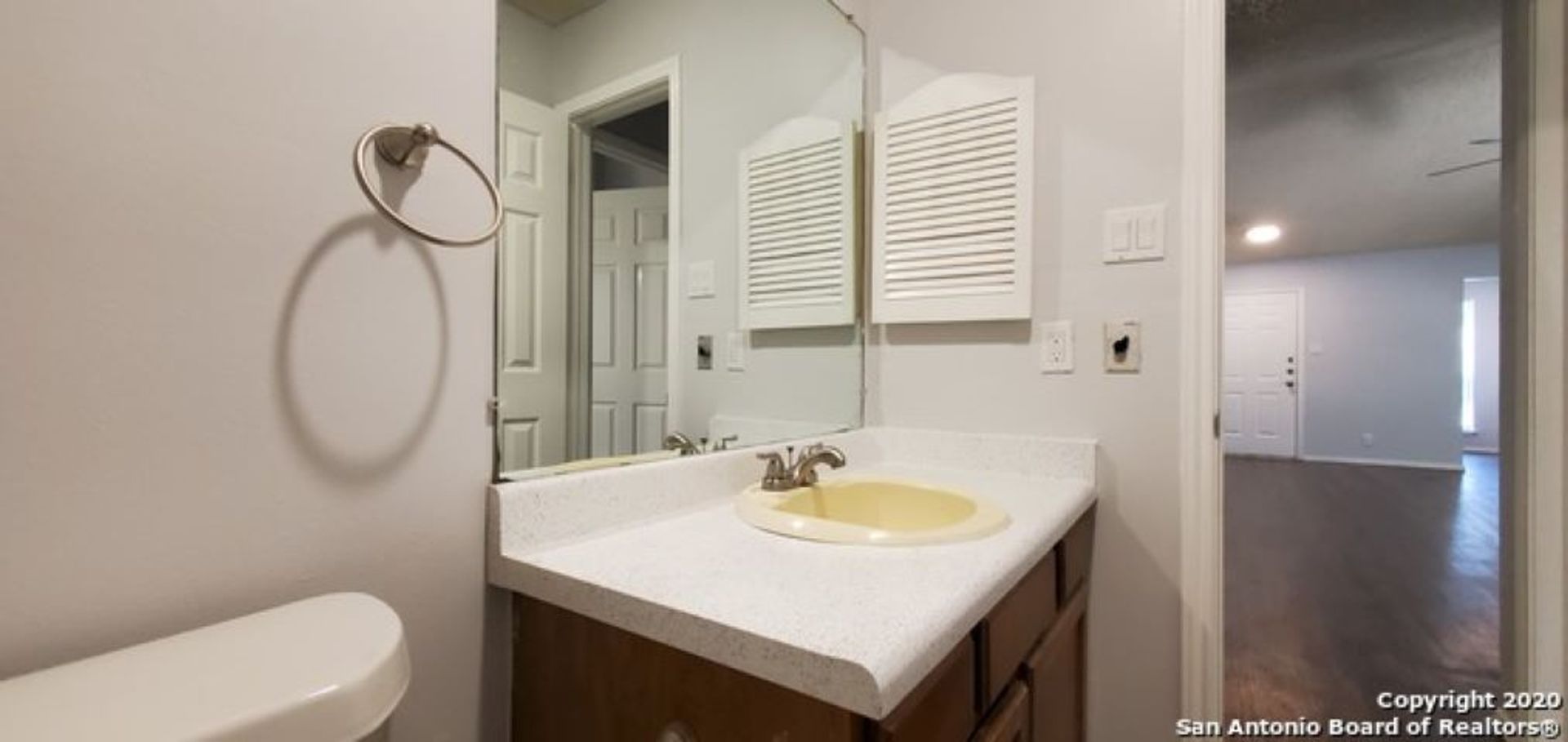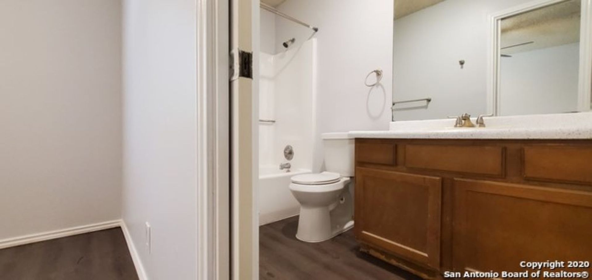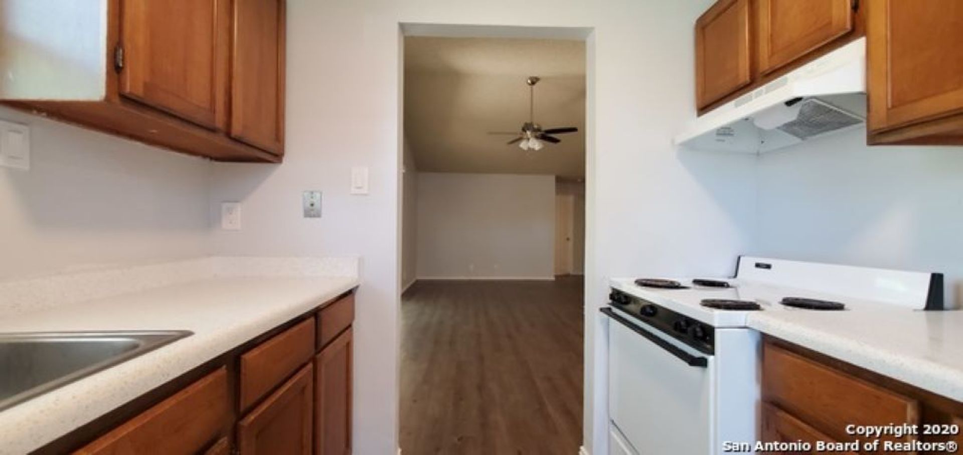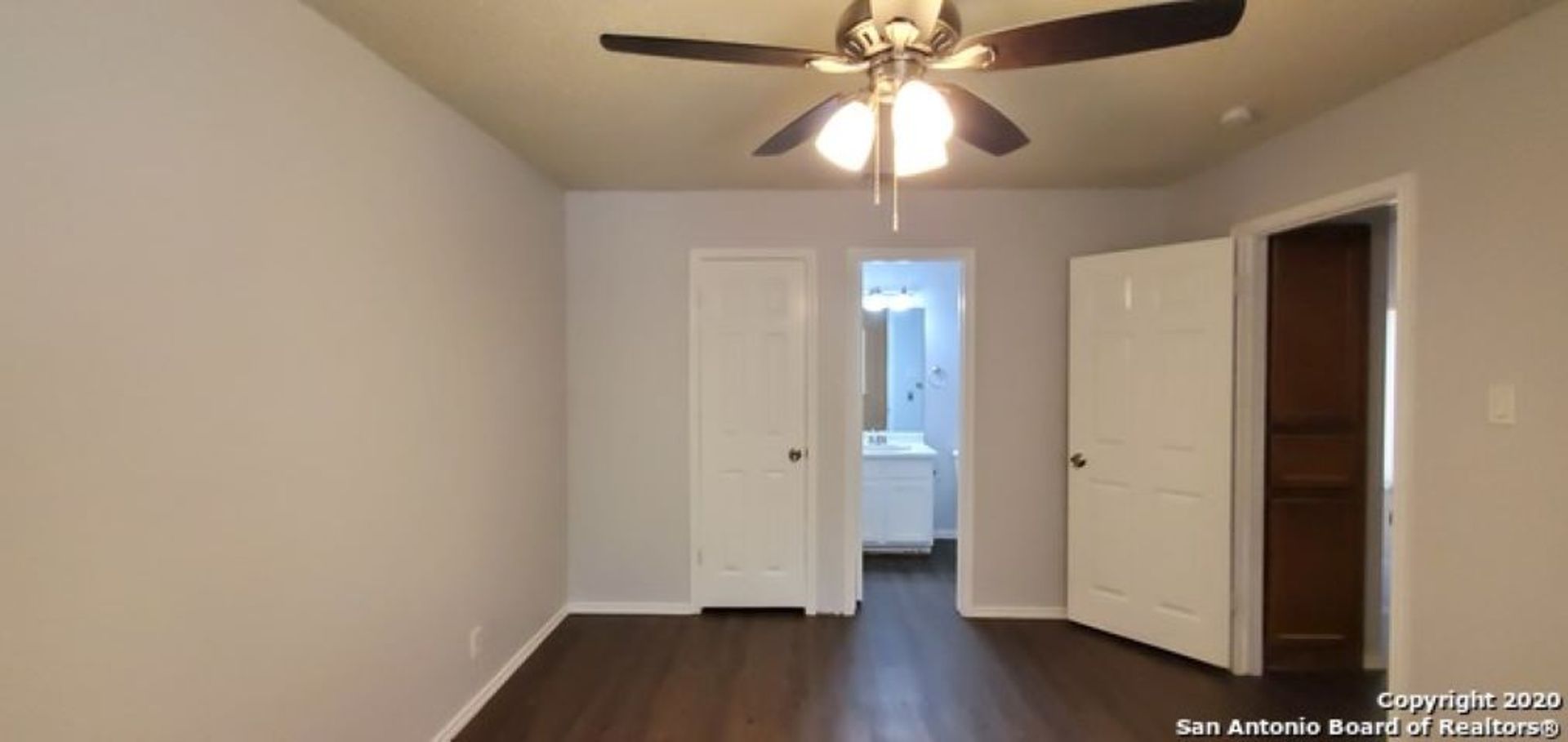 Welcome to this charming single-story duplex featuring 2 bedrooms and 2 full bathrooms. Experience the spaciousness of high ceilings in the main living area, creating an open and airy ambiance. The home boasts luxury vinyl flooring throughout, eliminating the need for carpet. The kitchen is fully equipped with a refrigerator, dishwasher, and stove, ready for your culinary adventures. The primary bedroom includes a walk-in closet and an en-suite bathroom for added convenience. Step outside to a large backyard, perfect for your personal touch. With easy access to Lackland AFB, Alamo Ranch, Hwy 410, and the 151 business corridor, this home is ideally located for all your needs.