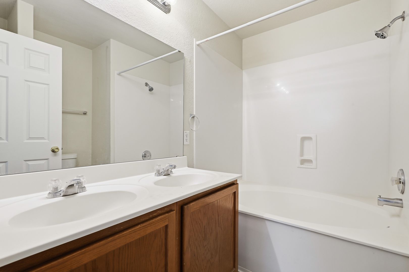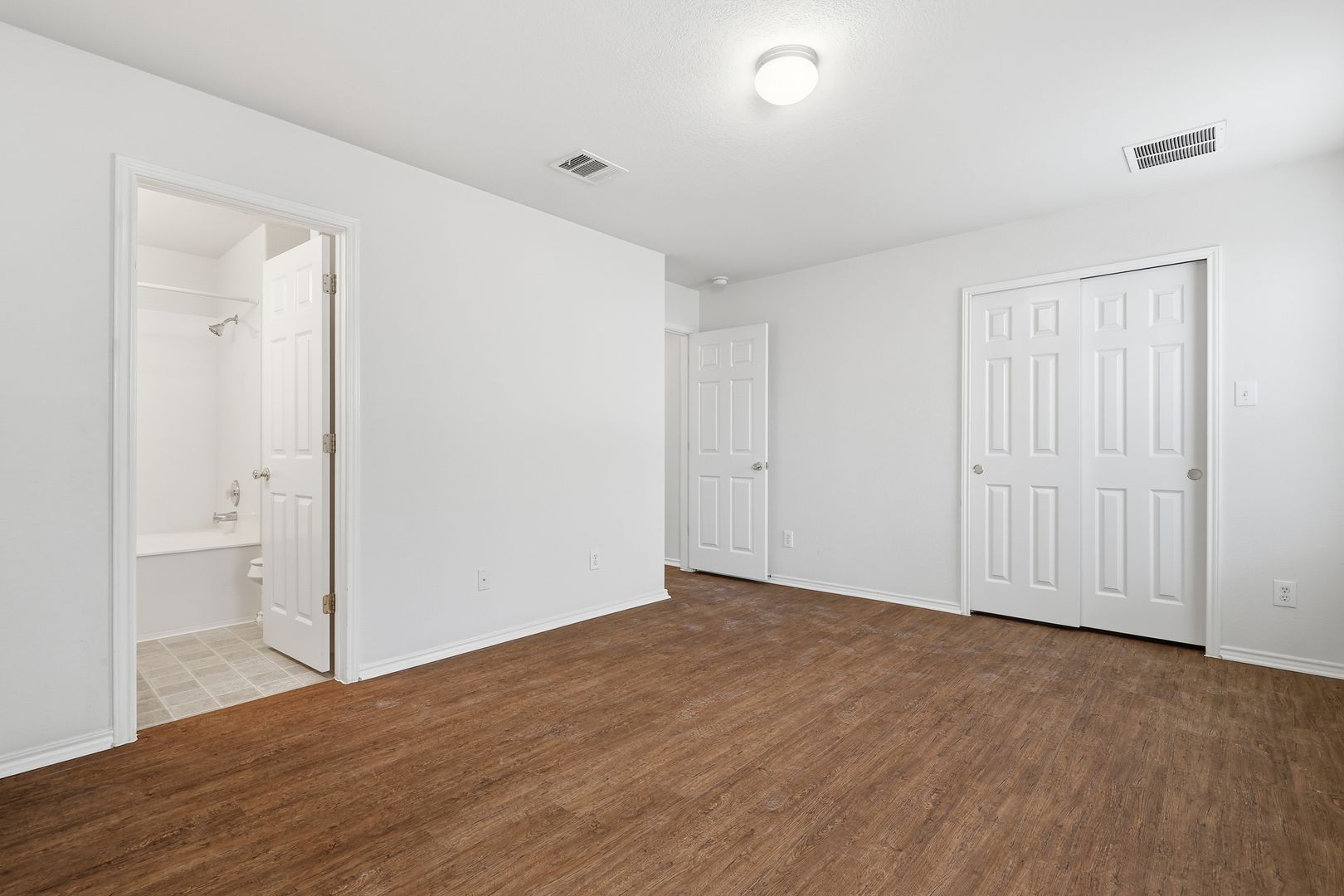 Welcome to this stunning two-story home located in the highly sought-after Wolf Creek subdivision. As you step inside, you'll be greeted by a picturesque entryway, featuring soaring ceilings and exquisite architectural details that set the tone for the rest of the home. The main level hosts the primary bedroom, a tranquil retreat with an attached ensuite that boasts a double vanity and a relaxing garden tub. There's also a convenient powder bathroom for your guests.