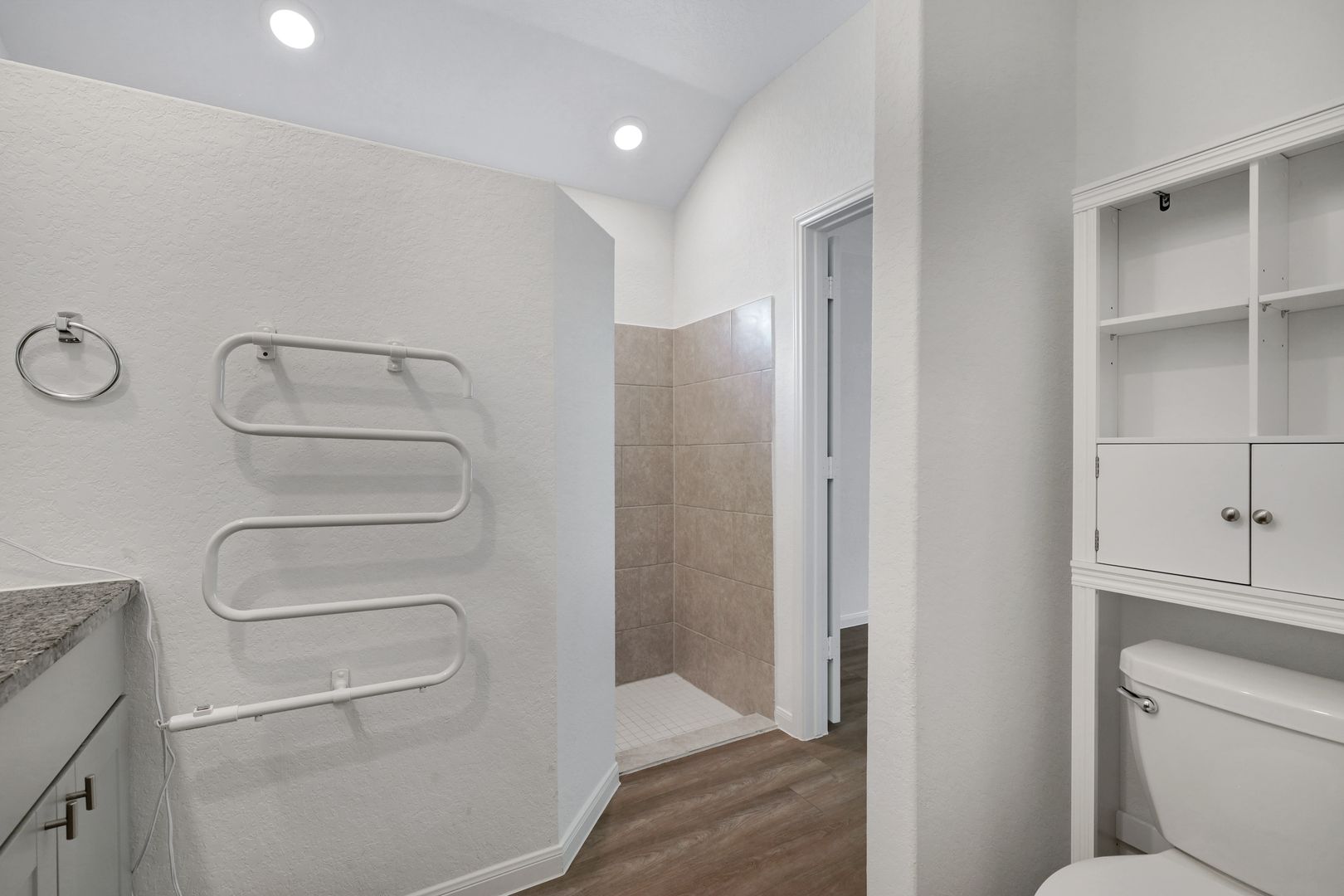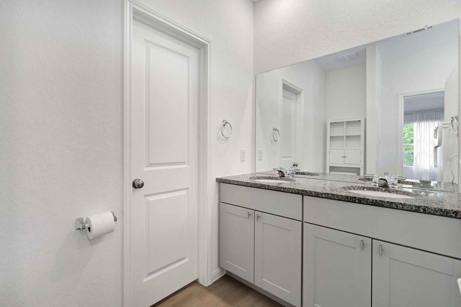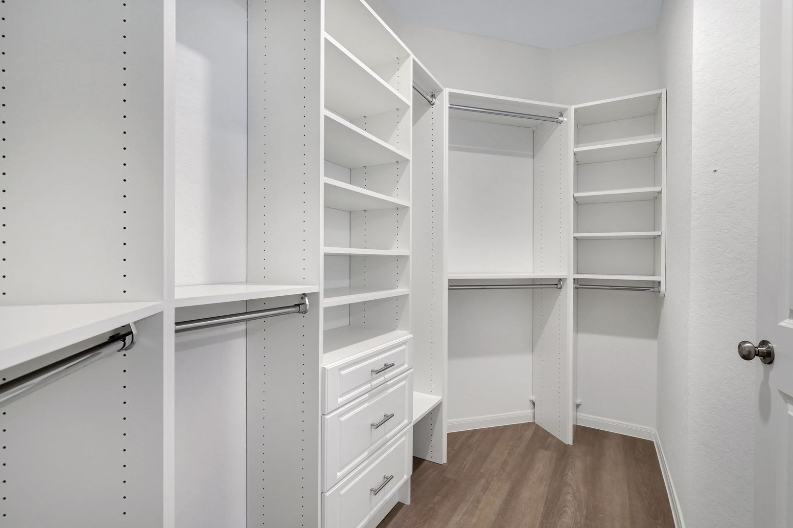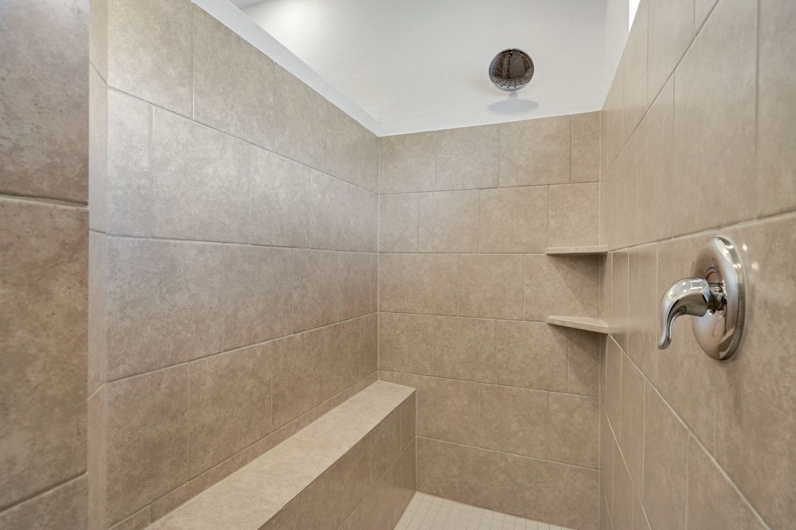 Your primary bedroom is thoughtfully positioned away from the secondary bedrooms, ensuring maximum privacy. The primary bathroom is a true retreat with an oversized, beautifully tiled walk-in shower and a walk-in closet equipped with custom shelving.