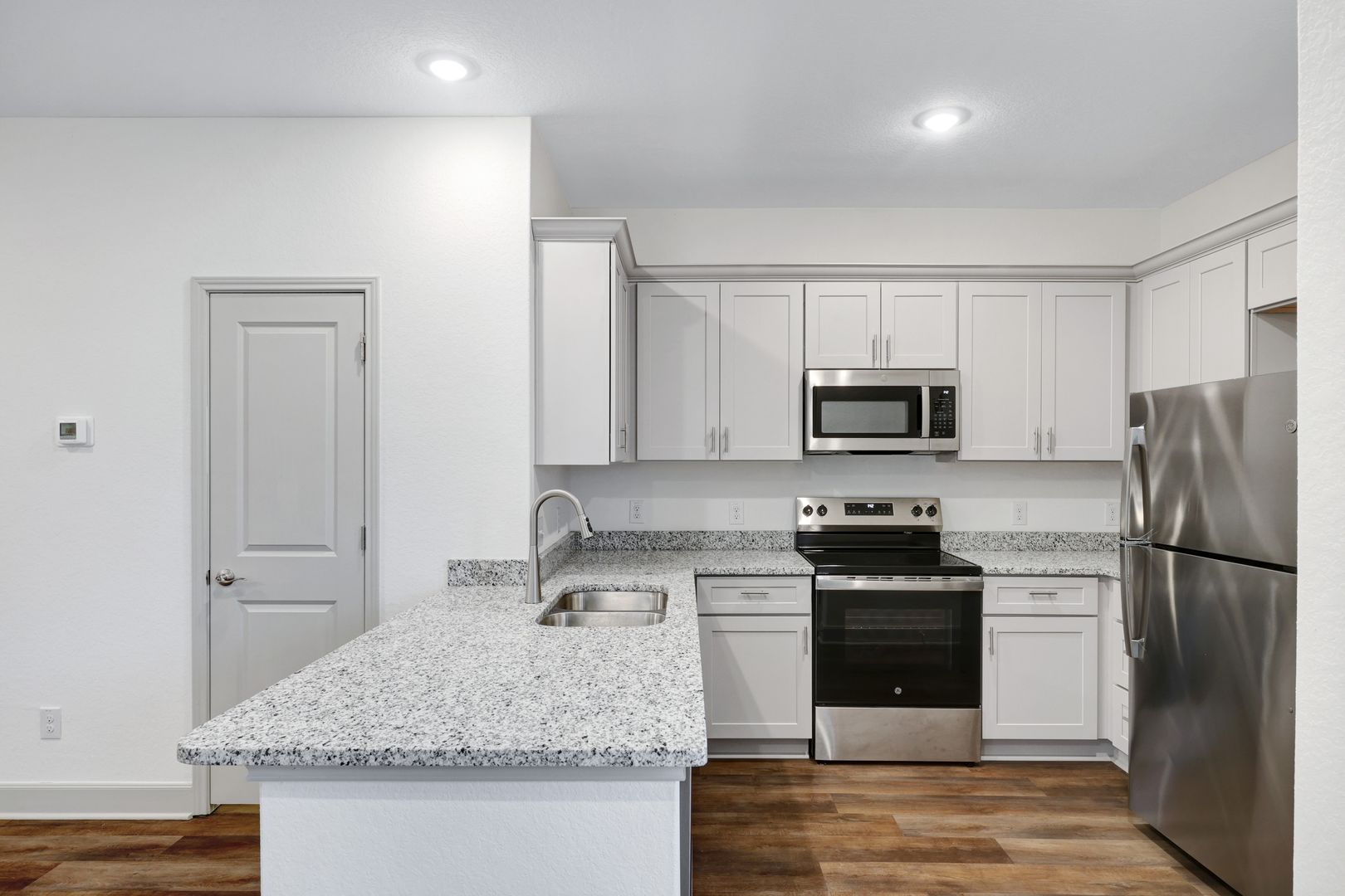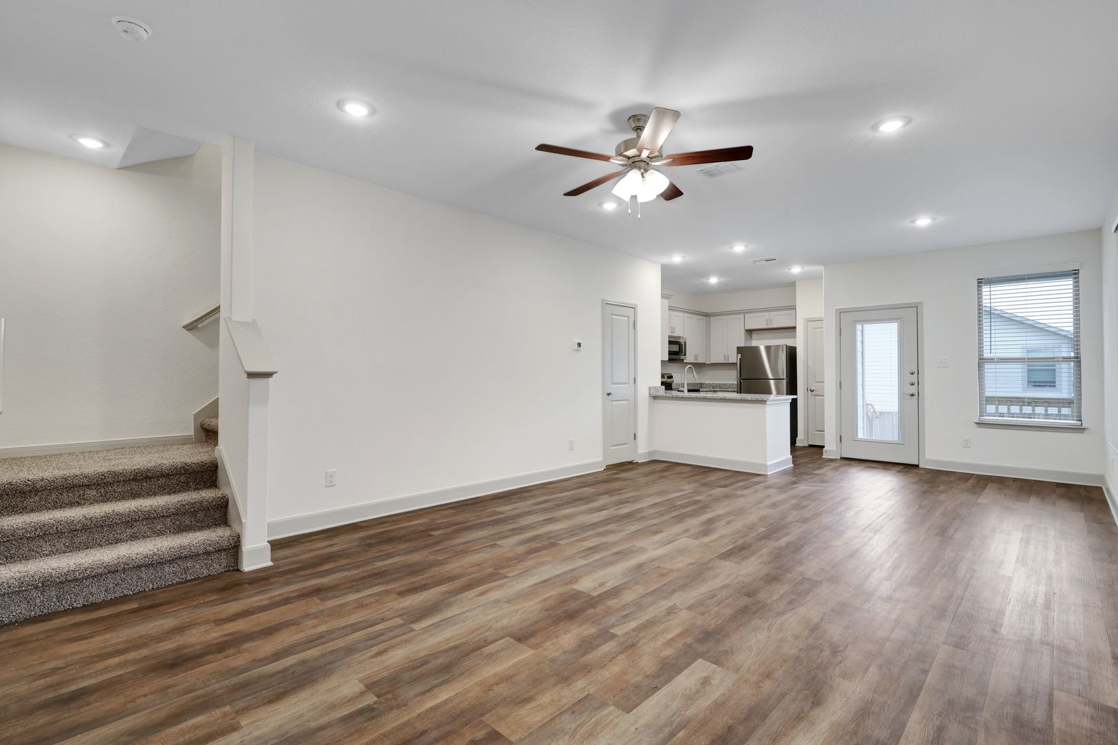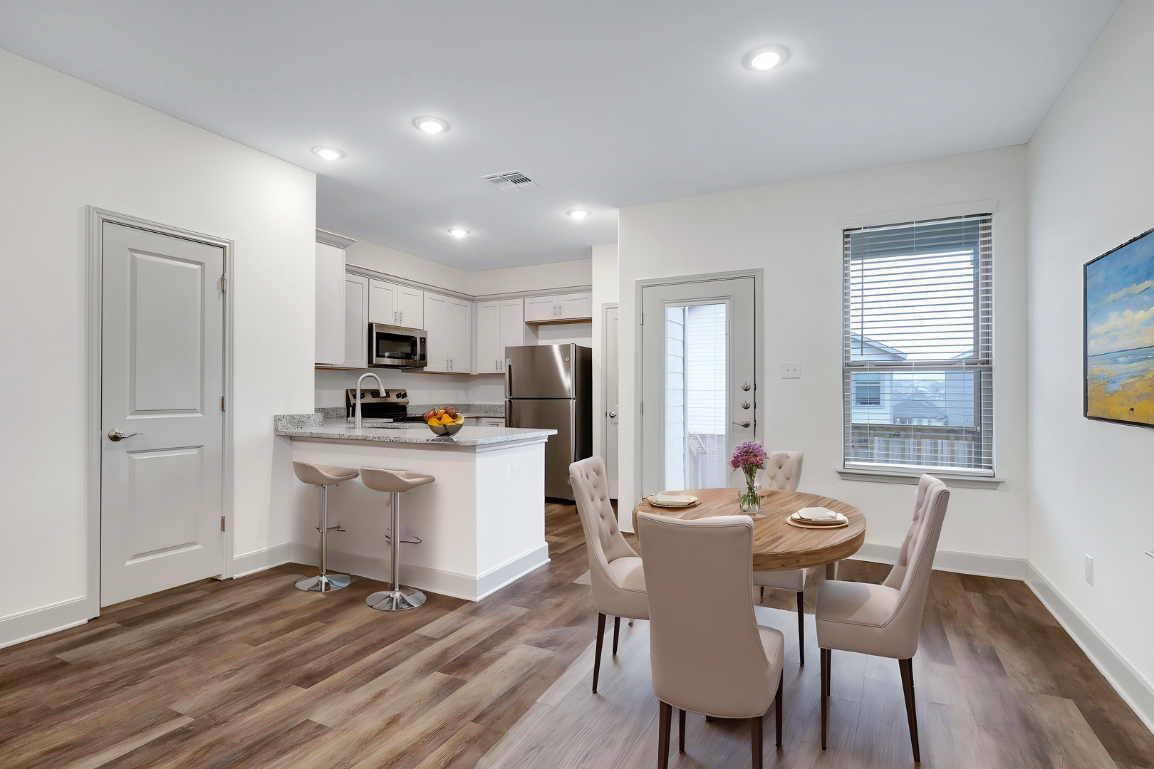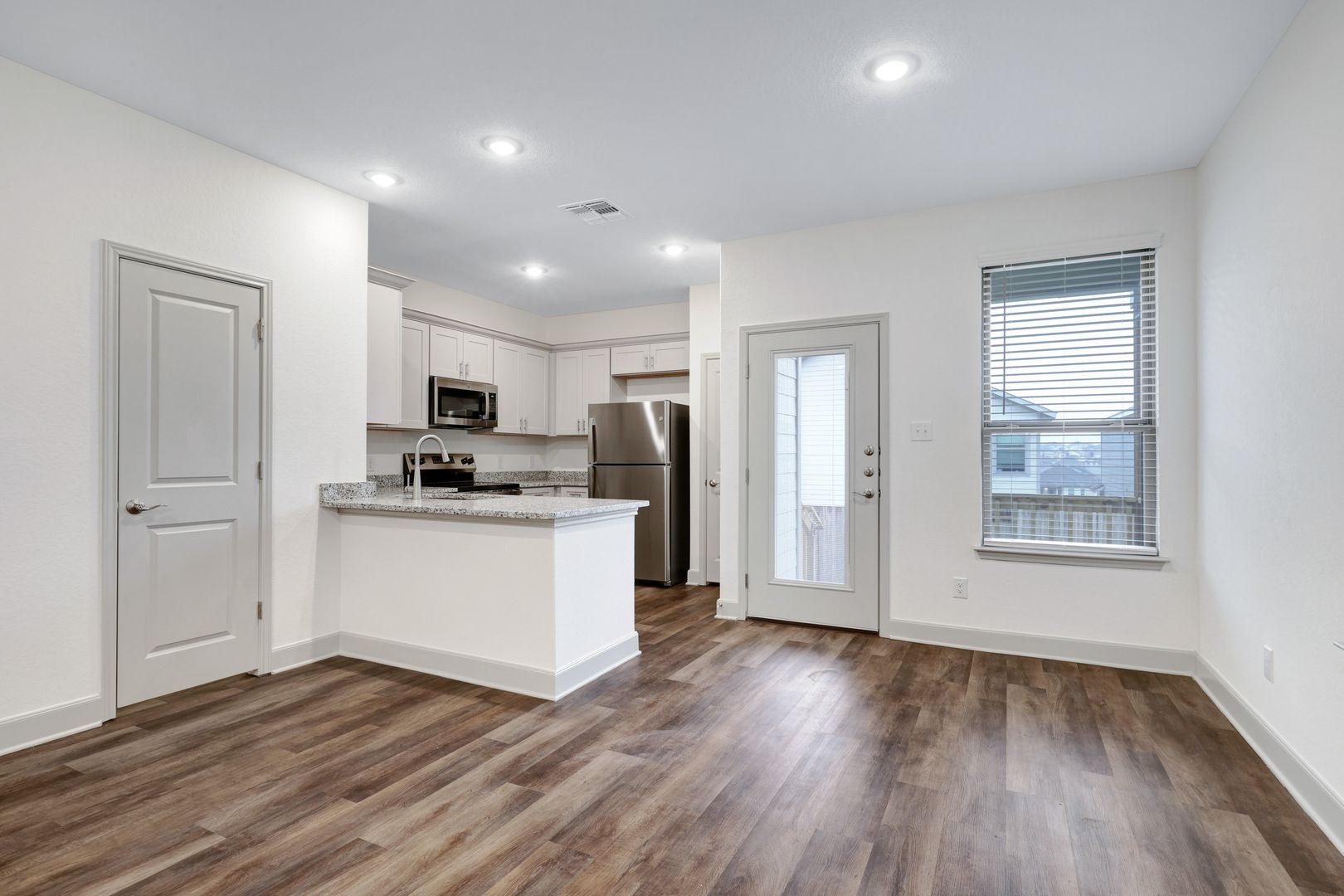 Experience modern living in this two-story attached townhome, located in the gated community of Magnolia Village. Step inside to discover tall ceilings and an inviting open floor plan, featuring stylish vinyl plank flooring throughout the first level. The well-appointed kitchen boasts granite countertops, ample cabinet space, and a refrigerator for your convenience. A half bath on this level adds extra functionality for guests.
