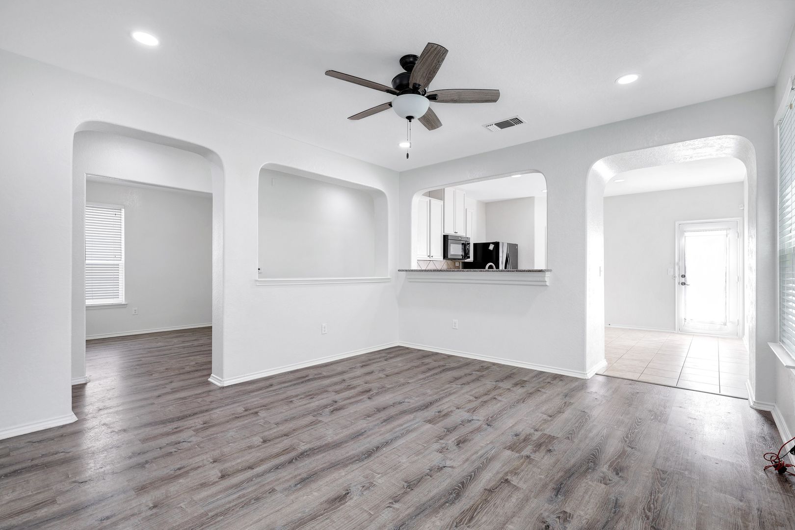 Welcome to this stunning, single-story home offering luxury and convenience, just minutes from Fort Sam Houston, Randolph Brooks AFB, top-tier shopping, dining, and more. Step inside to experience sleek laminate and tile flooring throughout—no carpet to worry about! Enjoy versatile dining options with a breakfast nook in the kitchen or a spacious, flexible room adjacent to the living area, perfect for formal meals, a home office, or additional lounge space. The home is move-in ready and comes complete with major appliances, including a washer, dryer, and refrigerator. Ceiling fans throughout provide year-round comfort, while the thoughtful layout offers a serene retreat in the primary suite. To top it off, a generous backyard awaits, perfect for outdoor relaxation. This home truly has it all.