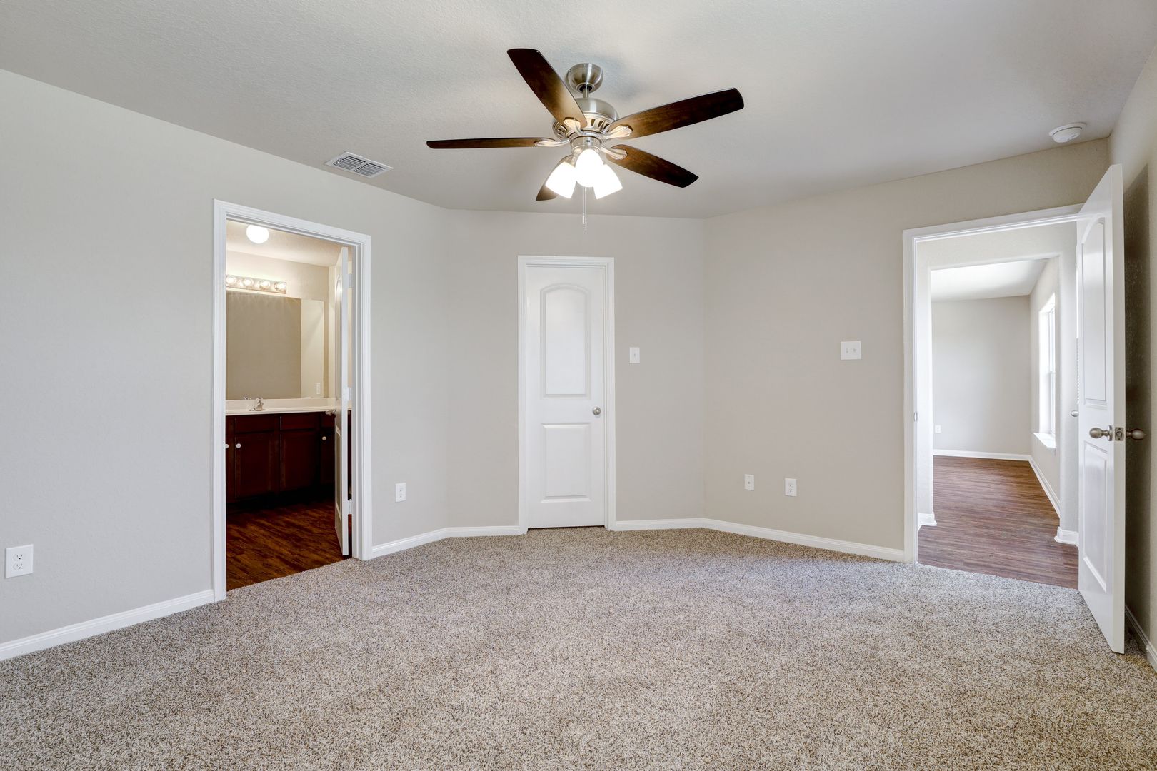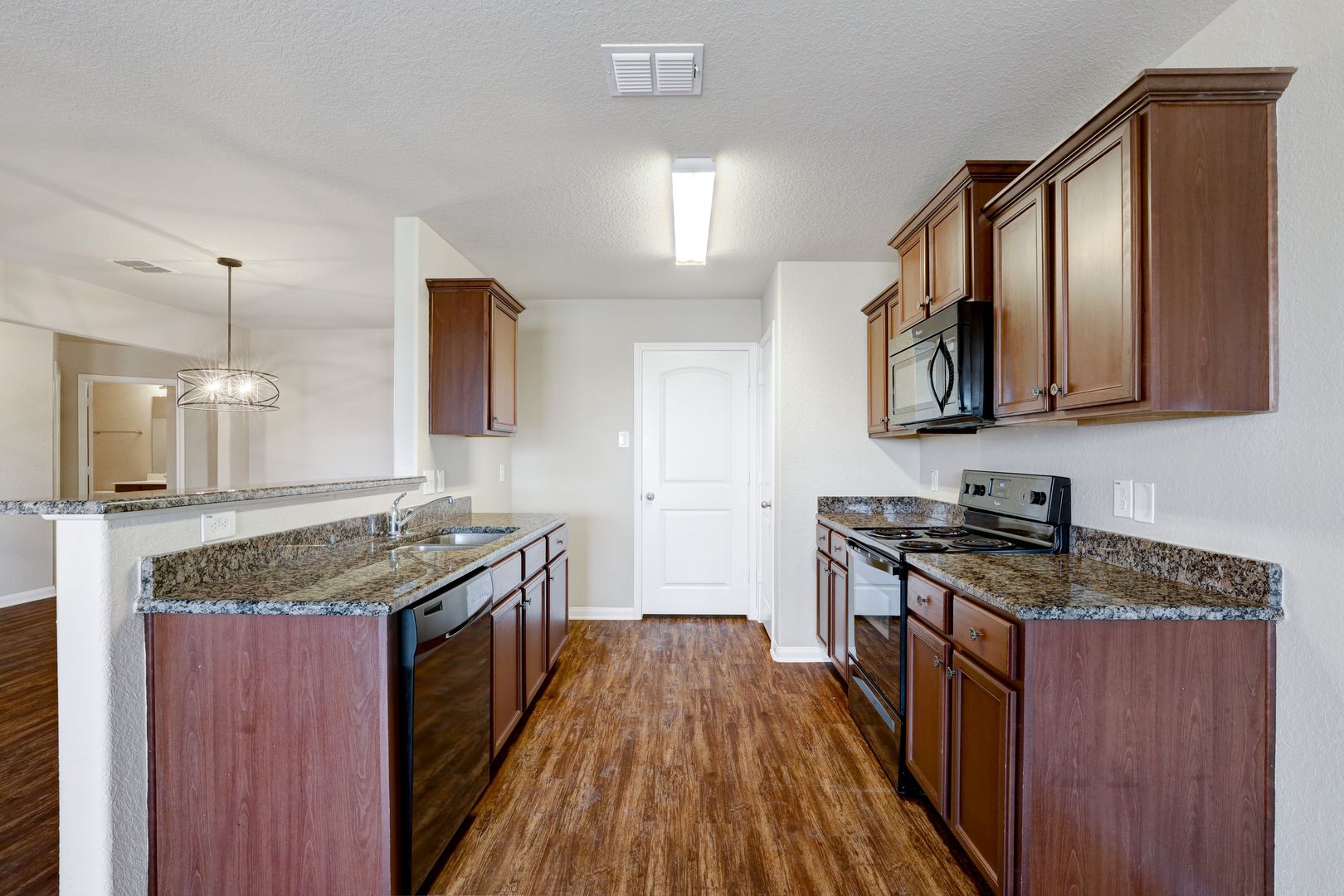 This single-story home features three bedrooms and two bathrooms with a functional, open layout. The main living areas are finished with luxury vinyl flooring for durability and easy maintenance, while the bedrooms include carpet for added comfort.