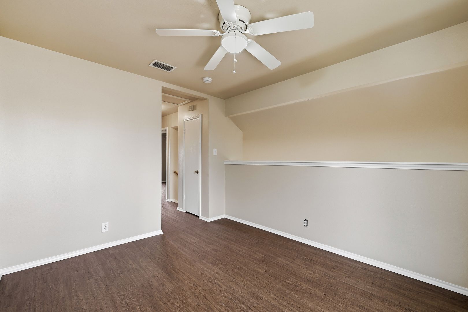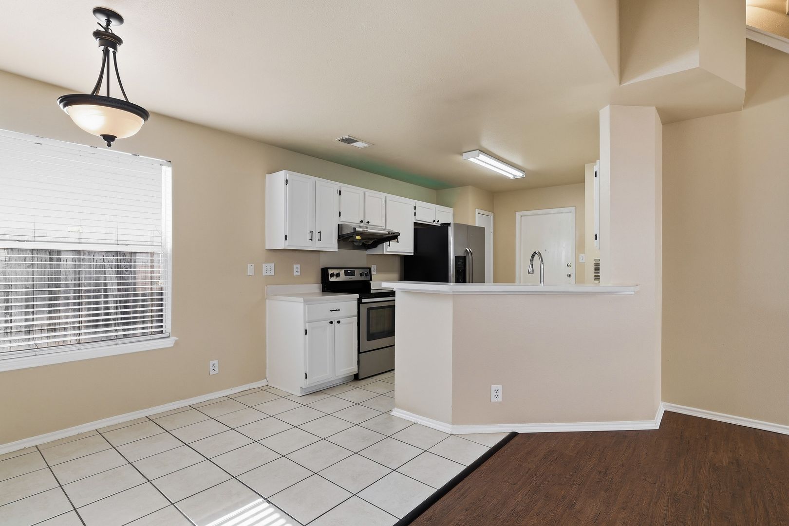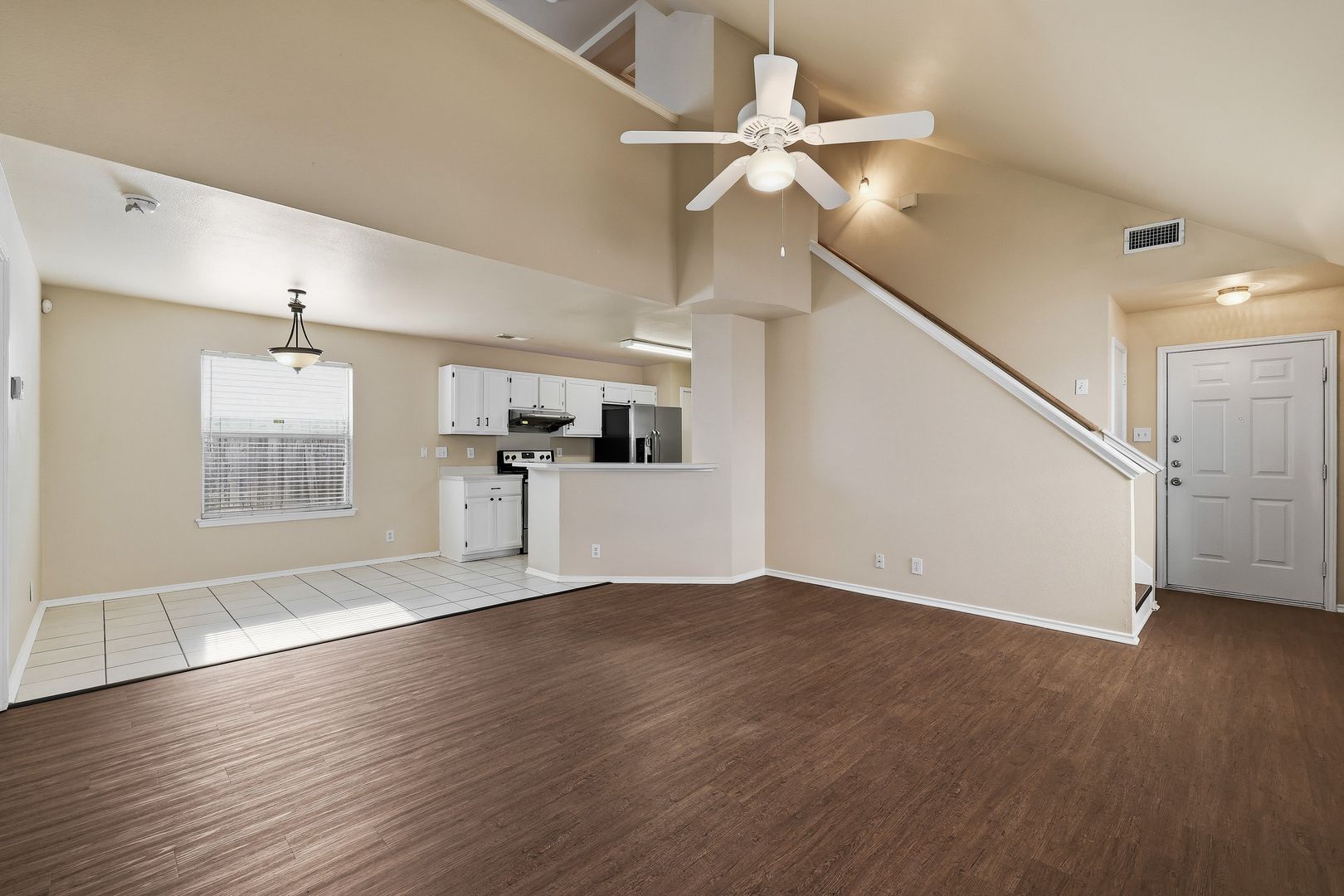 Two-story, recently renovated residence located in Guilbeau Gardens. The interior features luxury vinyl plank flooring throughout the main living areas and all bedrooms. There is no carpet in this home. The living room offers soaring ceilings, creating a bright and open atmosphere. The well-appointed kitchen includes a separate dining area, bar seating options, and comes equipped with a refrigerator for convenient move-in. The primary bedroom is located on the main level and includes a private en suite bath. Upstairs, a spacious loft provides an ideal second living area or flexible workspace, along with two additional bedrooms. Outdoor highlights include an enclosed patio and a generously sized yard. Conveniently located with easy access to major highways, shopping, and dining, this property offers comfort, style, and accessibility.