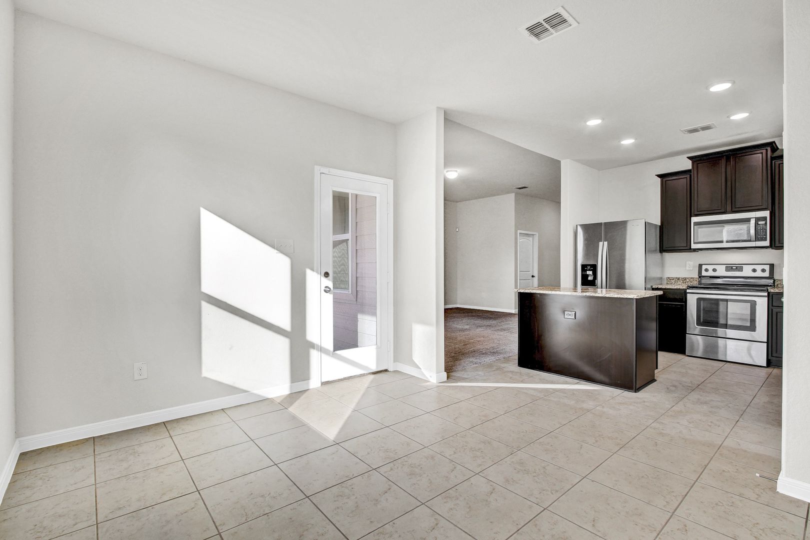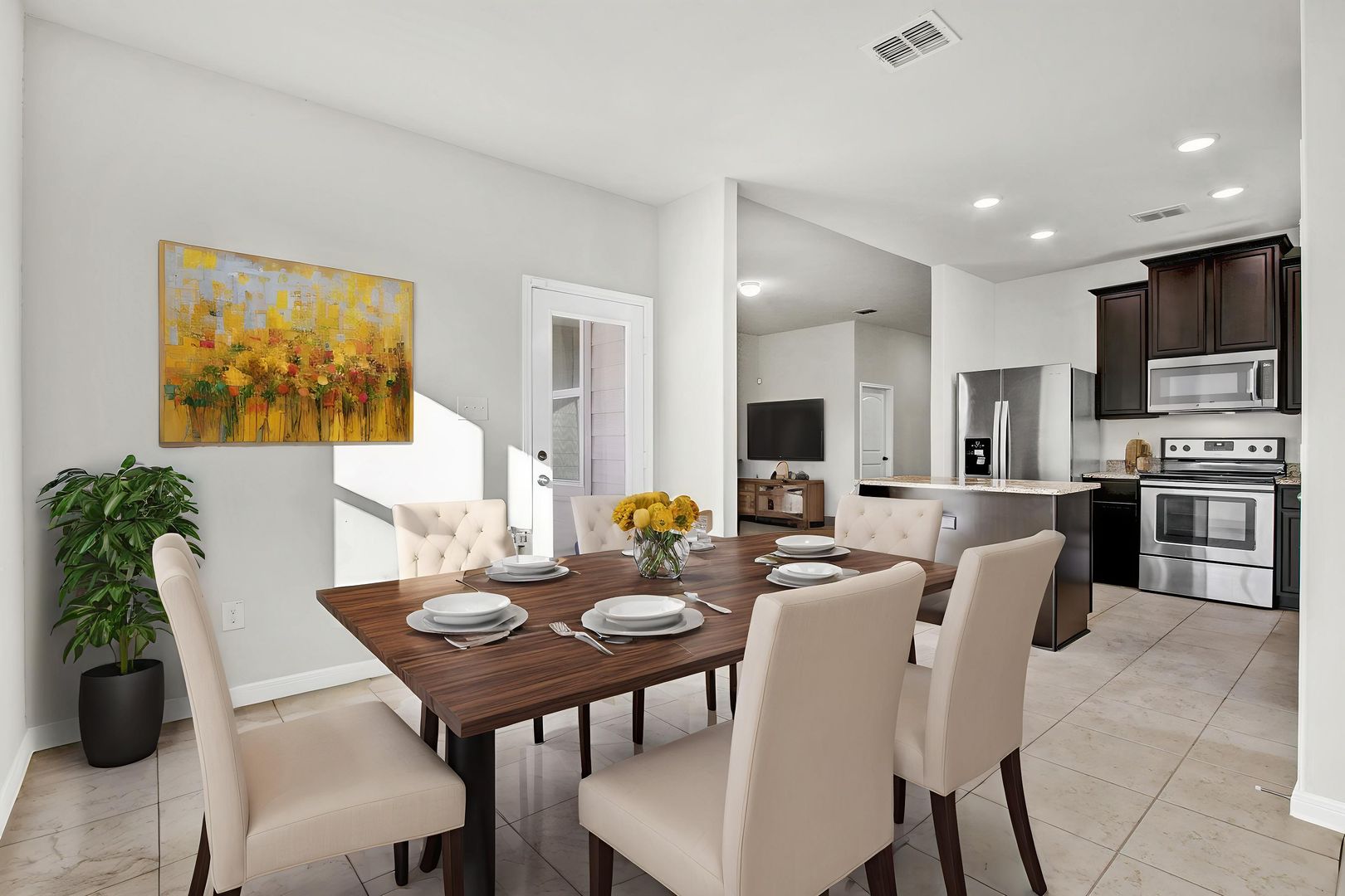 ***MOVE-IN SPECIAL: TWO WEEKS FREE***Located near Alamo Ranch, this stunning brick and stone residence offers a thoughtfully designed split floor plan for added privacy and flexibility. The secondary bedrooms are situated at the front of the home, while the spacious primary suite is tucked away at the back. The kitchen is equipped with a center island, ample counter space, and a refrigerator, and it opens to a dedicated dining room—perfect for hosting or everyday dining. The primary suite features a luxurious en suite with a separate garden tub, walk-in shower, and a generous walk-in closet. Enjoy the outdoors with a covered patio and fully fenced backyard for added privacy. With convenient access to Loop 1604, Lackland AFB, and nearby shopping and dining, this home delivers both comfort and accessibility.