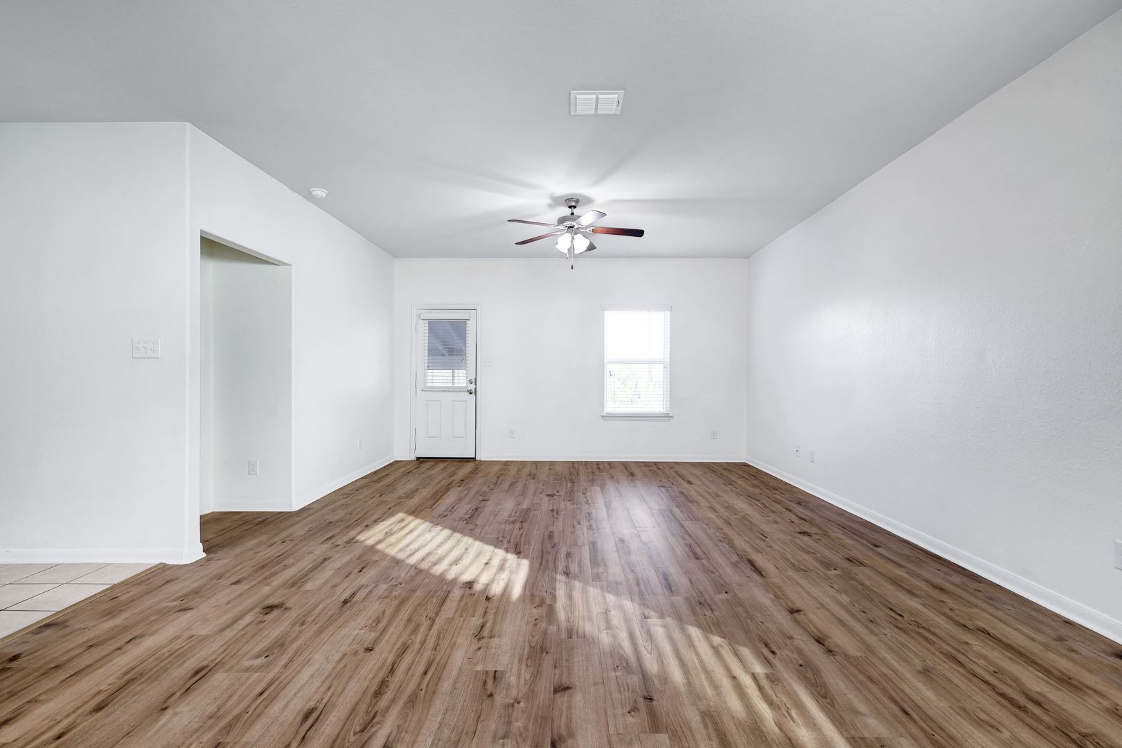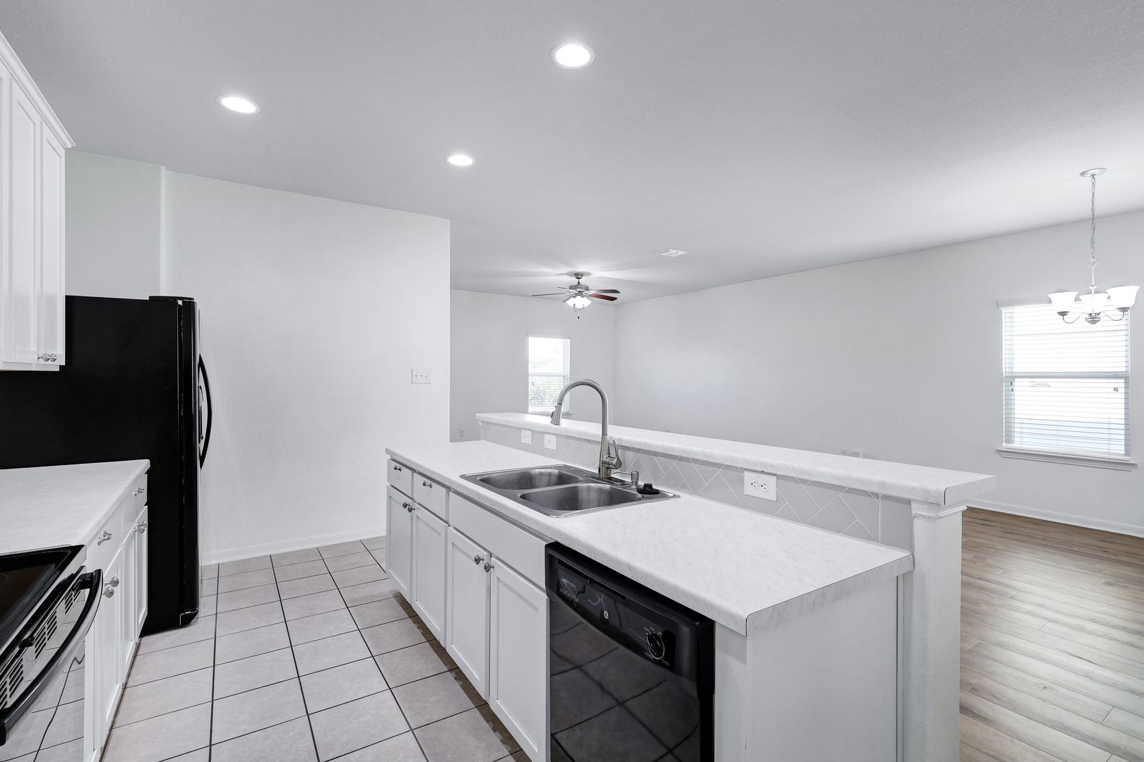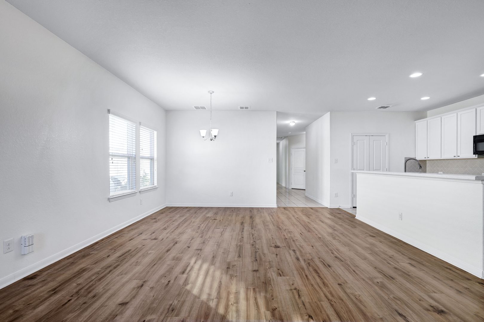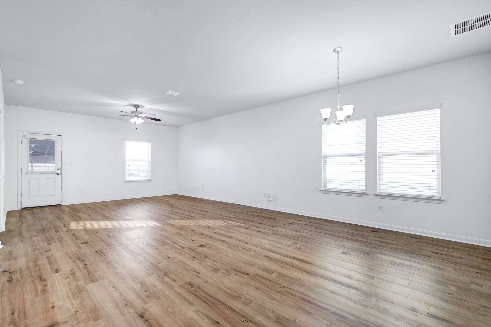 Beautiful single-story home in the desirable Laurel Mountain Ranch subdivision. This residence offers a well-designed layout with four secondary bedrooms positioned at the front of the home and the primary suite tucked away on the opposite end for added privacy. The kitchen is a true standout, featuring a large center island and an included refrigerator, all flowing seamlessly into the open-concept main living area adorned with luxury vinyl flooring.