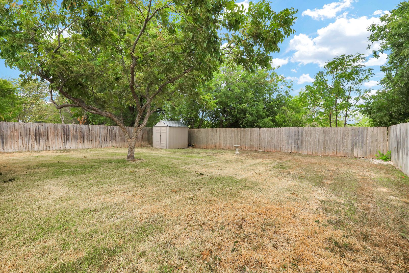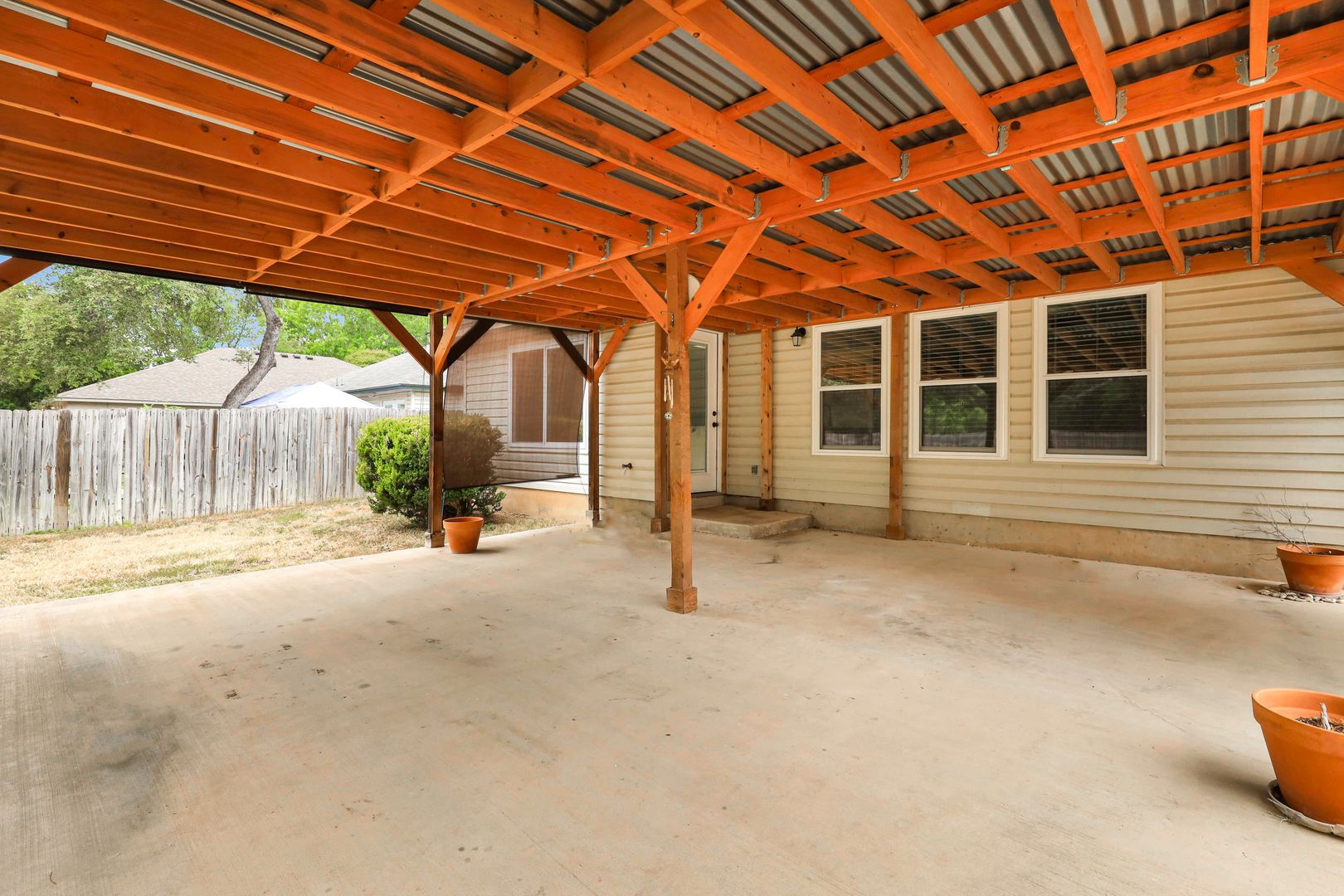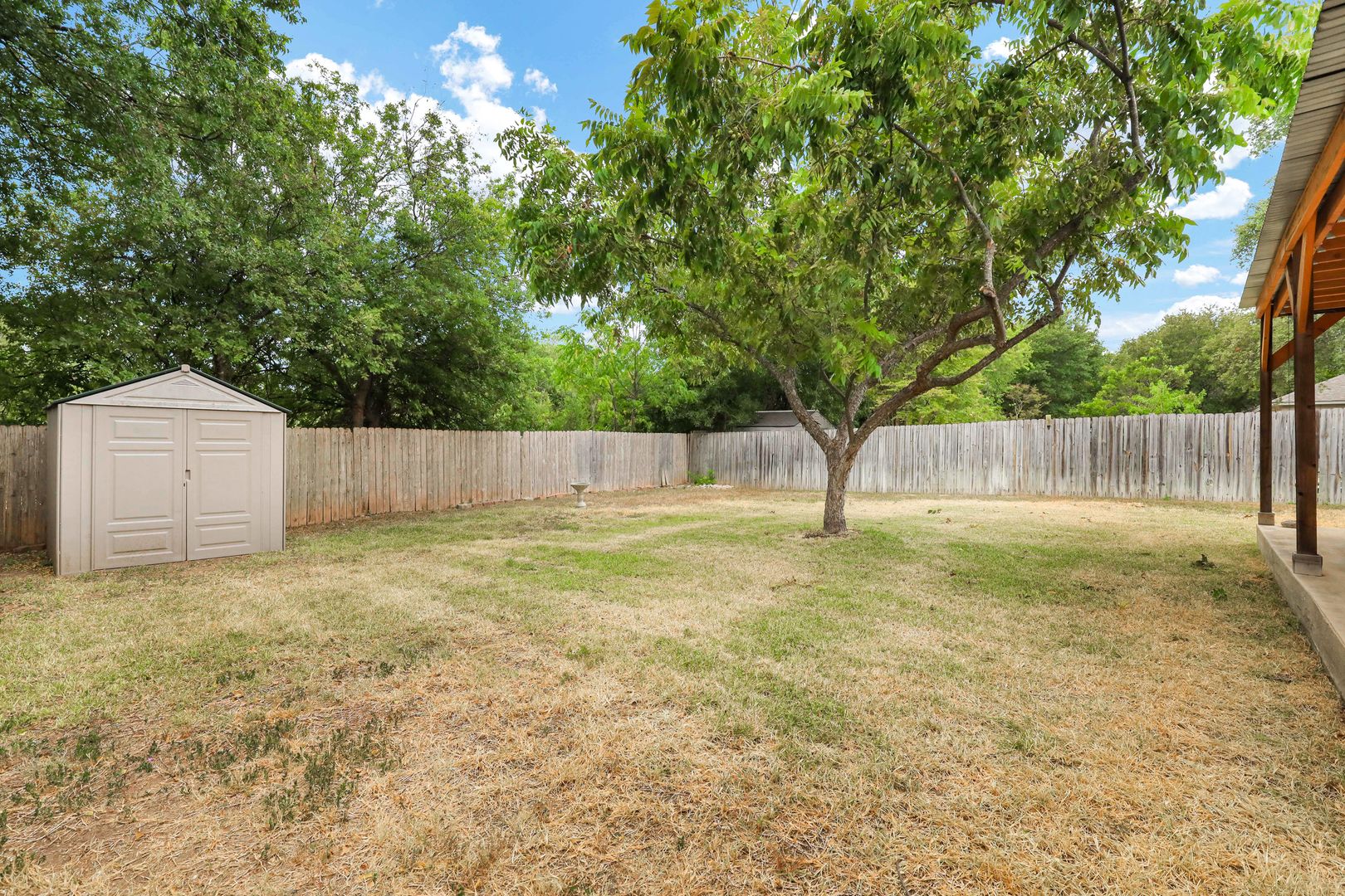 Step outside to a covered patio overlooking a large, private backyard—ideal for relaxing or entertaining. The garage includes generous storage and a built-in workbench, offering flexibility for a workshop or organized storage space.