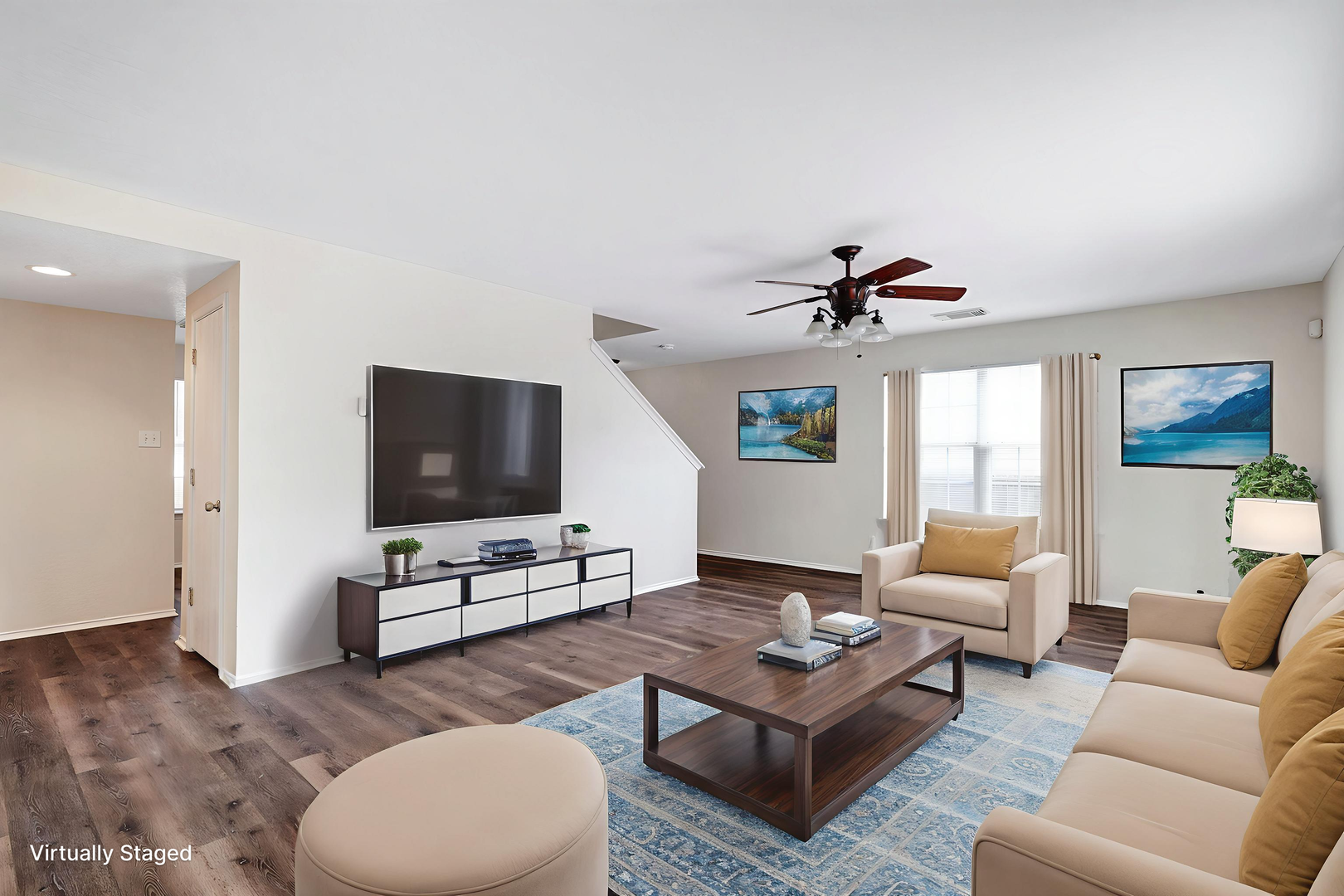 Downstairs also includes a spacious utility room and a walk-in pantry for optimal organization. Upstairs, the laminate flooring continues into a versatile loft—ideal for relaxing, entertaining, or creating a dedicated workspace. All bedrooms feature soft carpeting for added comfort, and the primary suite stands out with its generous proportions and a beautifully finished en suite bath.