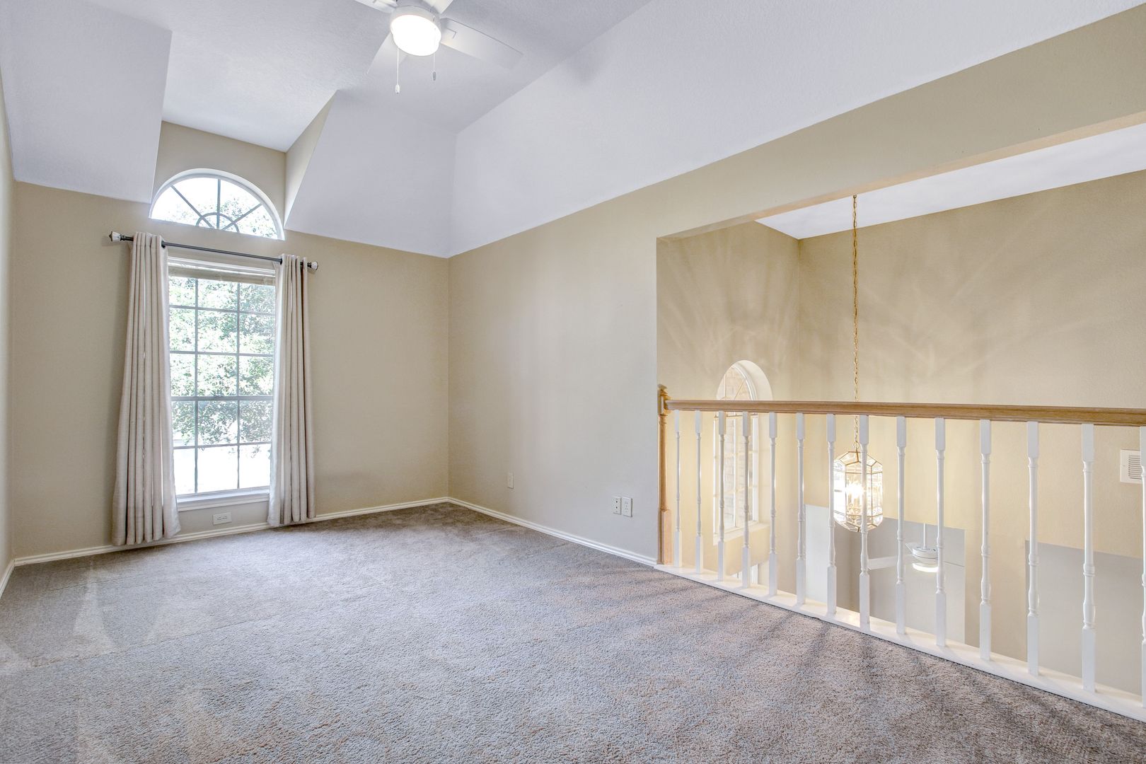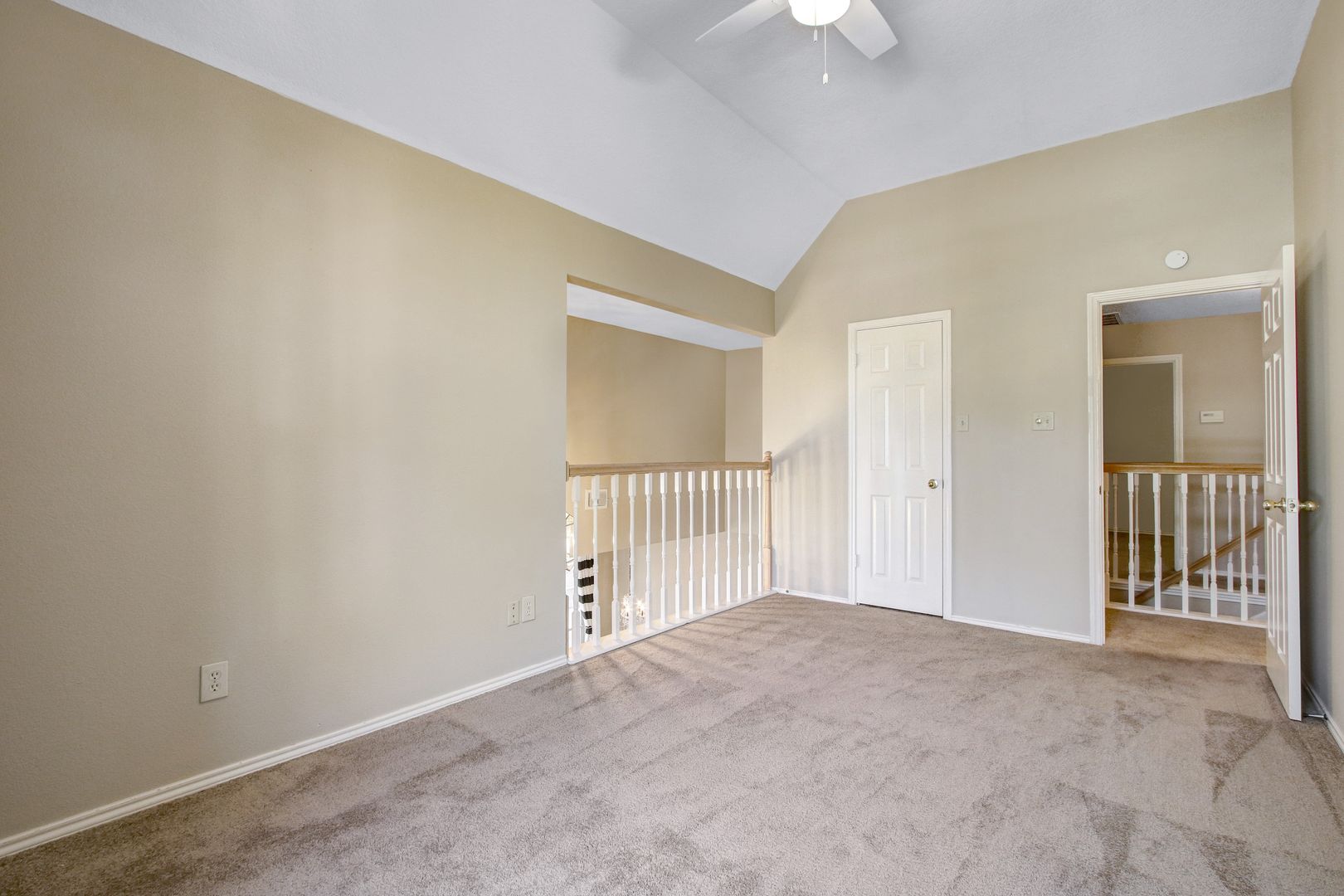 Upstairs, two secondary bedrooms are complemented by a loft with a door, ideal for a home office, media room, or flexible living space.