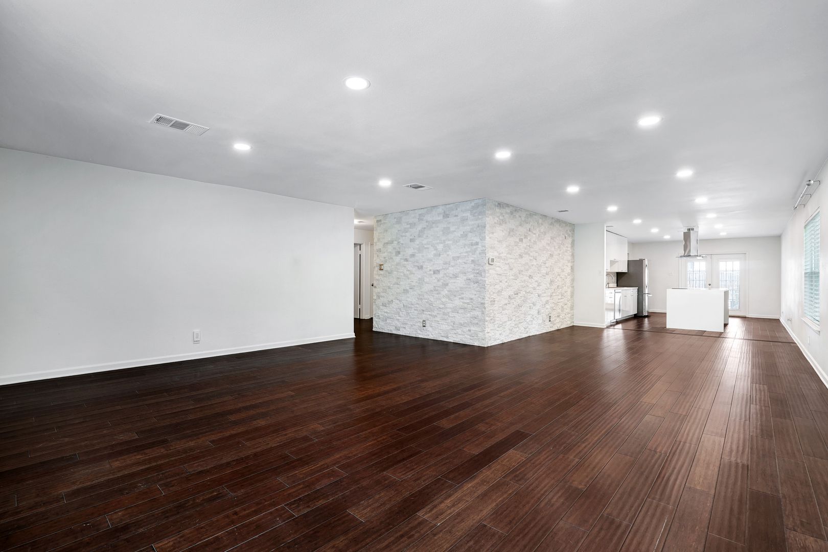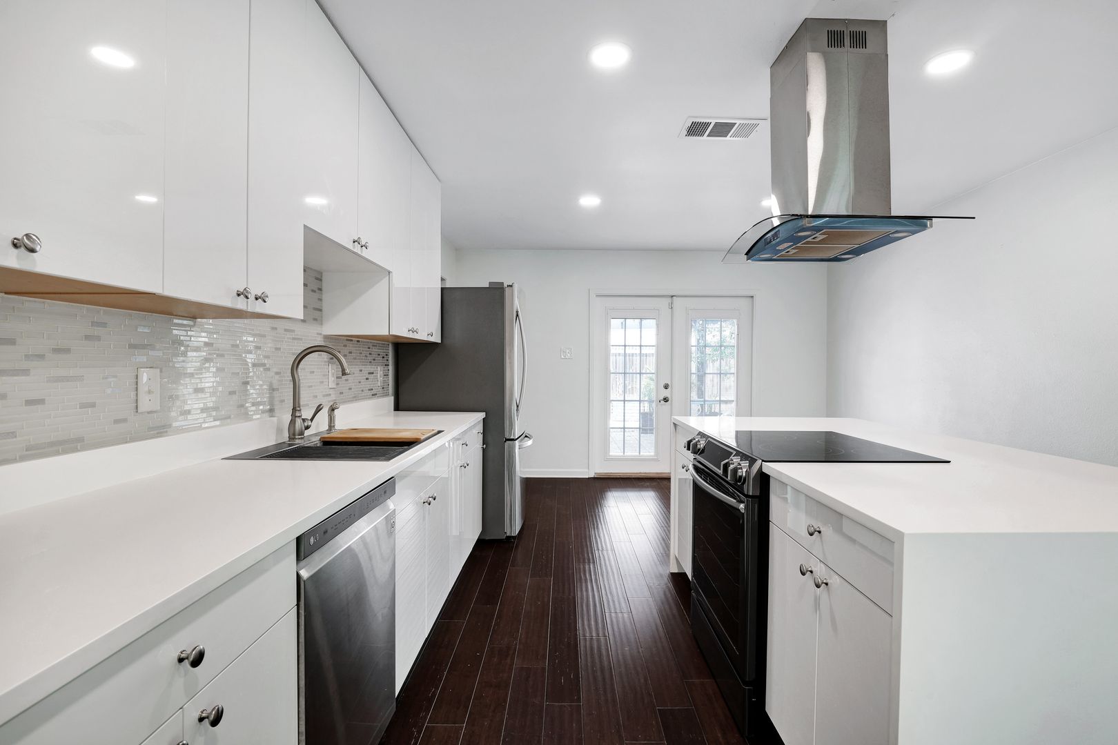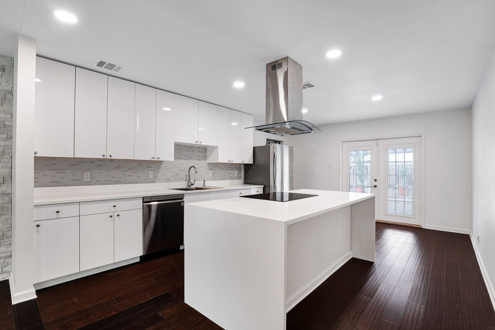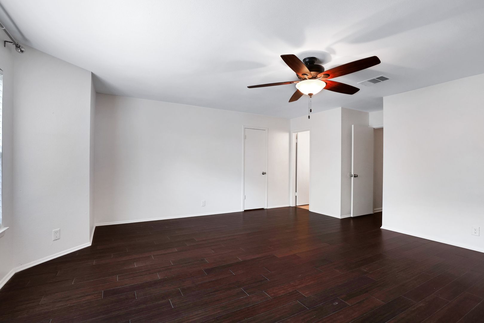 ***MOVE-IN SPECIAL: ONE WEEK FREE***Step into this recently refreshed one-story residence, thoughtfully updated for style and comfort. The home features rich wood flooring throughout and tile in the bathrooms—no carpet anywhere. Each bedroom comes equipped with its own ceiling fan, while recessed lighting adds a warm, modern touch to the living spaces. The kitchen is a true highlight, showcasing a spacious island with a sleek vent hood, updated backsplash, and contemporary countertops. A refrigerator, washer, and dryer are all included for added convenience. The primary suite offers a generous retreat with an en suite bathroom featuring newly updated shower tile. Outside, enjoy the meticulously landscaped grounds and an expansive covered patio, perfect for relaxing or entertaining. With quick access to major highways, the 151 Business Corridor, and a variety of shopping and dining, this home offers a lifestyle of ease and accessibility.