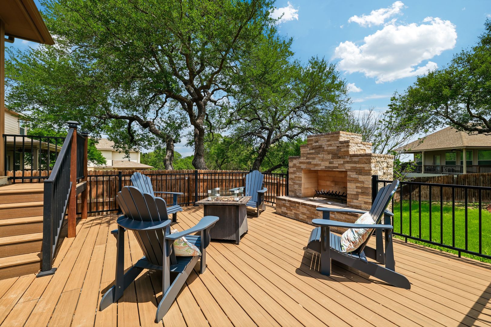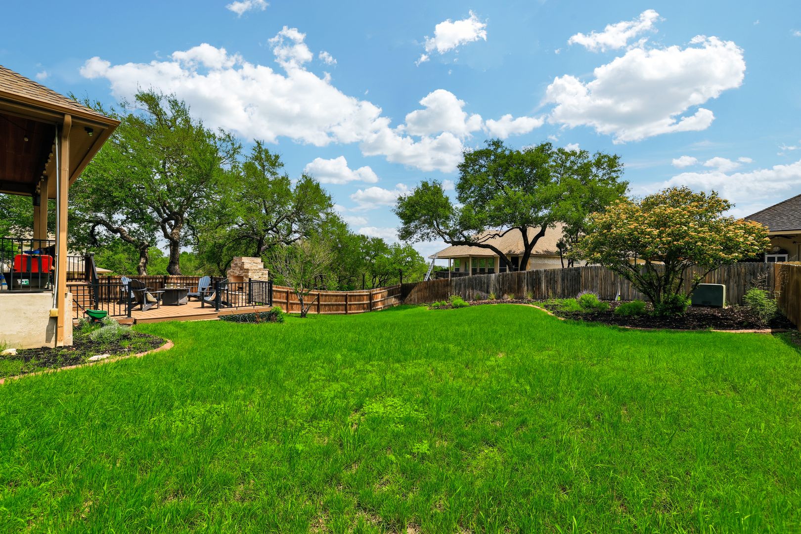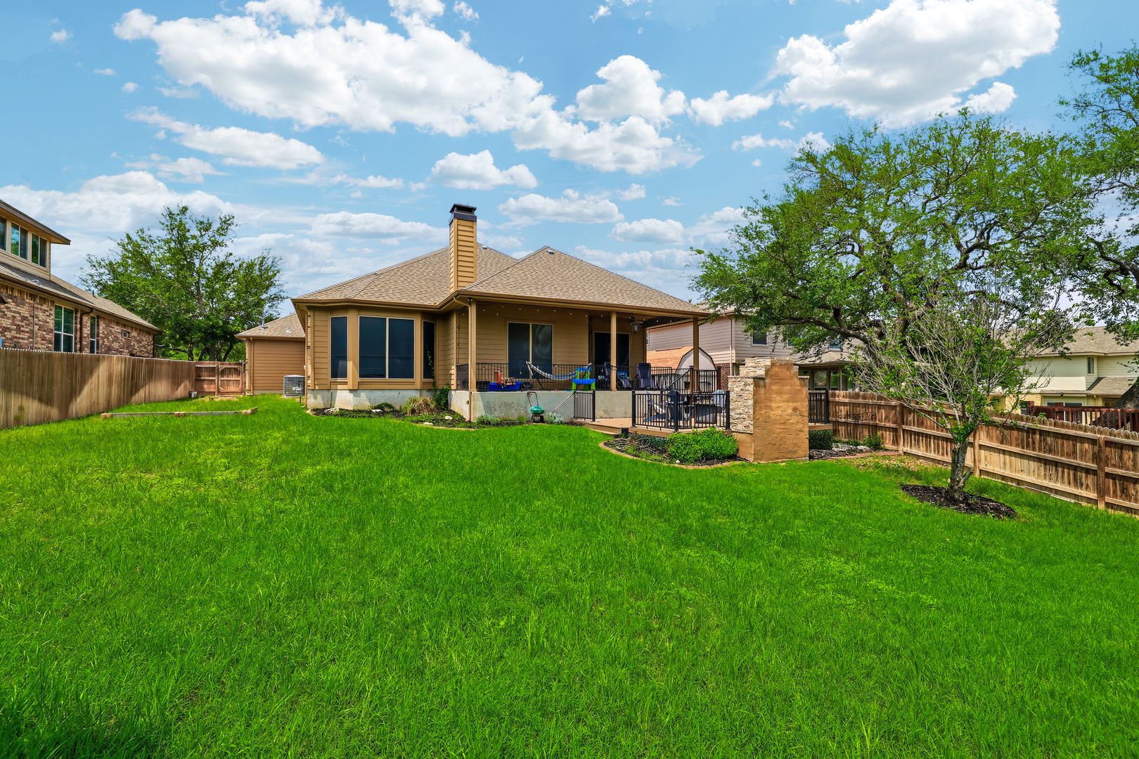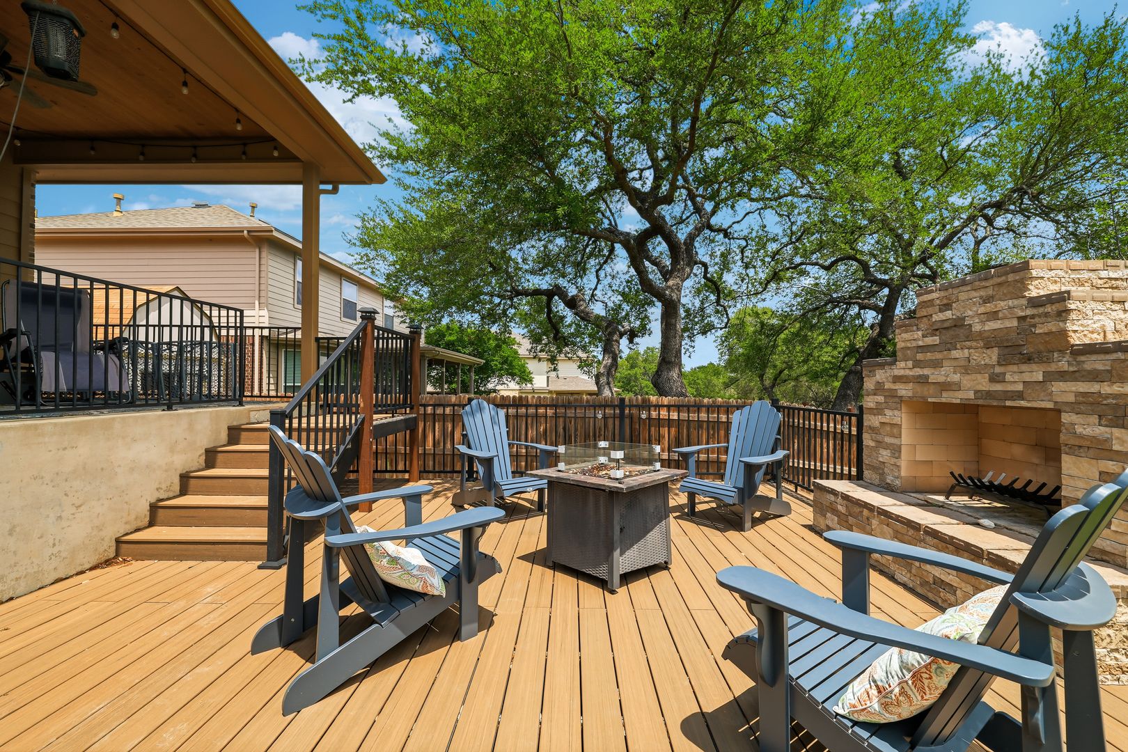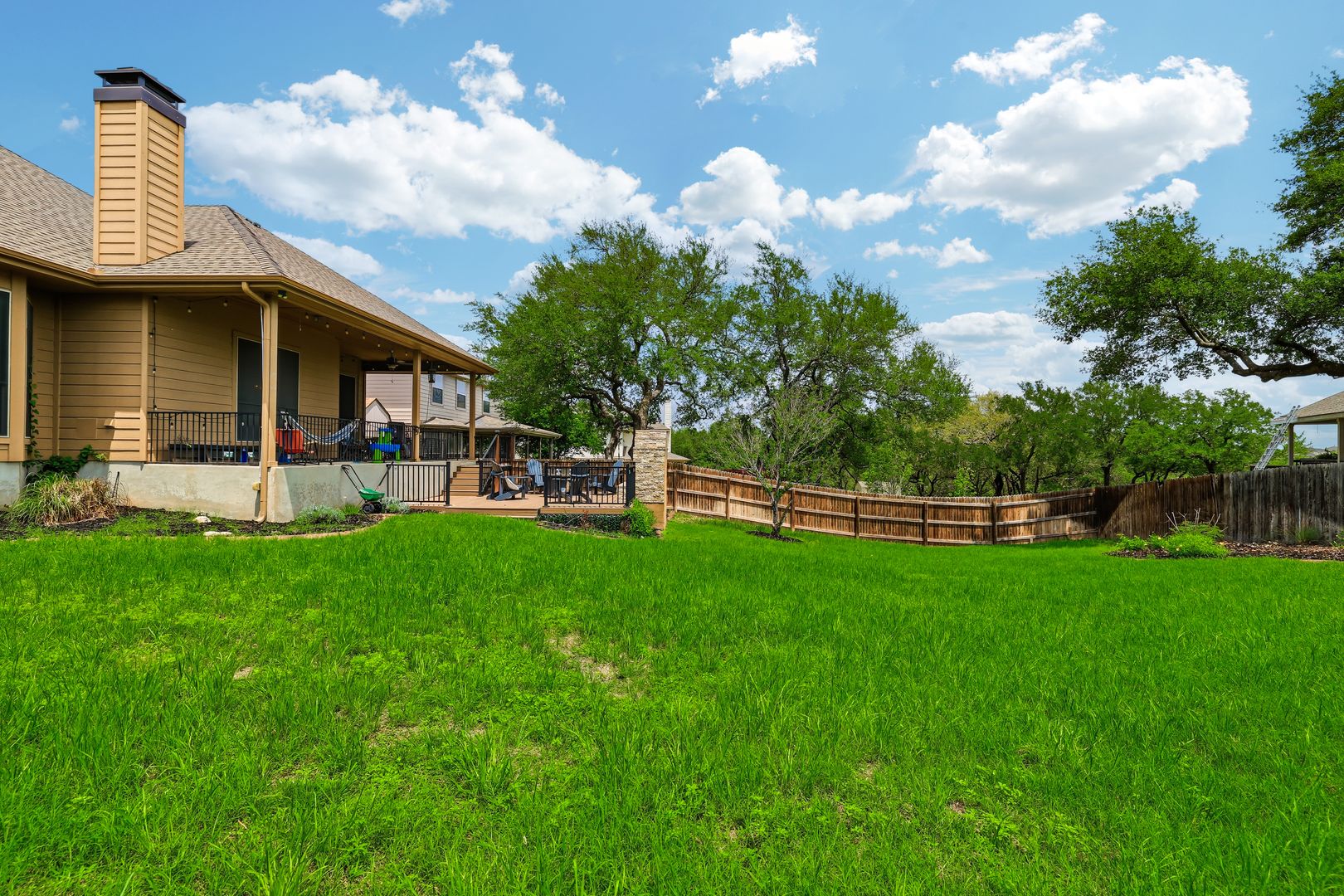 Outdoor living is just as inviting, with a covered patio, an extended deck with a fireplace, and a generously sized yard. A water softener is also included for added convenience. Residents of RedBird Ranch enjoy access to community amenities such as a pool, playground, and multiple sports courts, offering a well-rounded living experience.