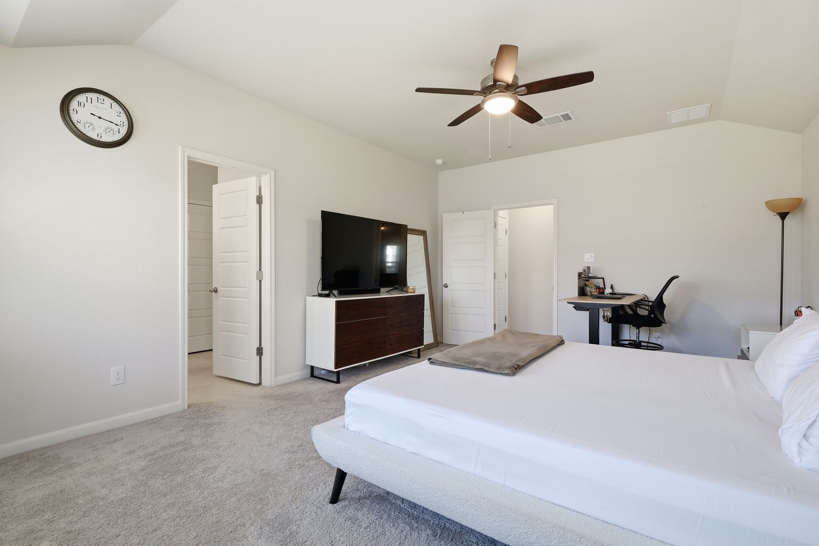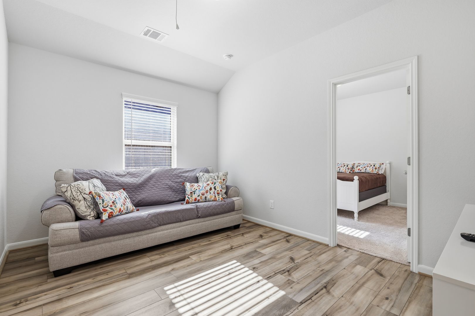 This home offers a functional and unique layout. A bedroom is positioned at the front of the home, while two additional secondary bedrooms are connected by a versatile second living area ideal for movie nights, a game room, creative space, or a private lounge.