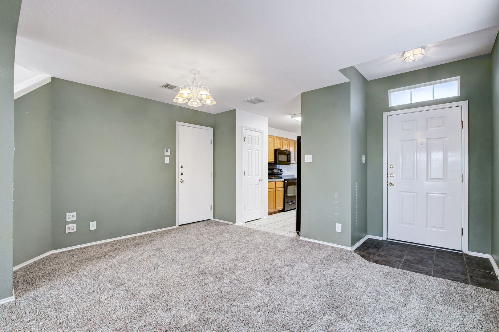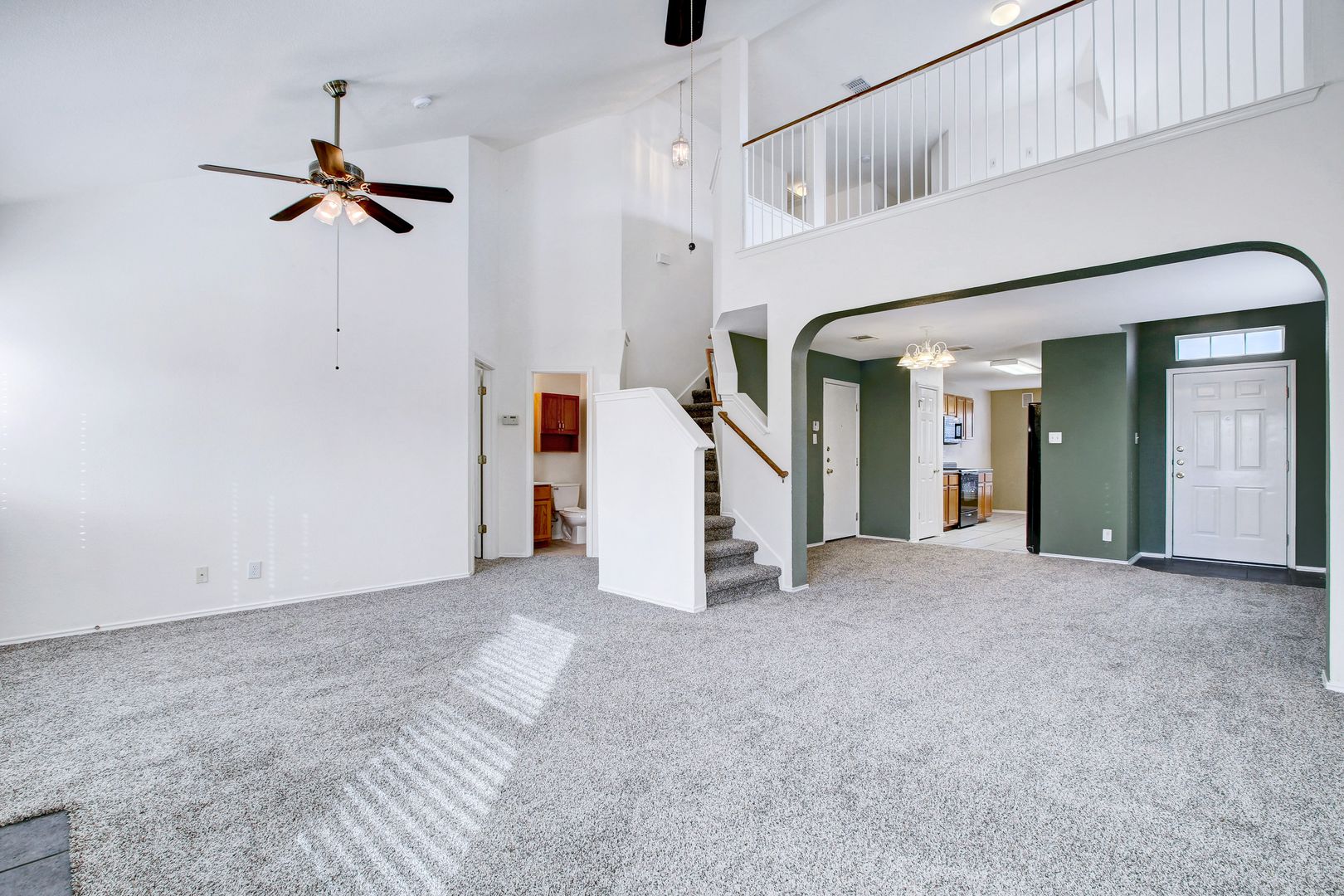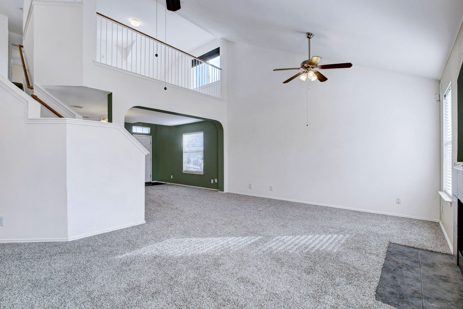 Discover the charm of this two-story gem in the Springs Vistas subdivision. Step through the inviting entryway into a spacious living room featuring a stunning fireplace and soaring vaulted ceilings. The primary suite, conveniently located on the main floor, offers a peaceful retreat with an en suite boasting a separate shower and a relaxing garden tub.